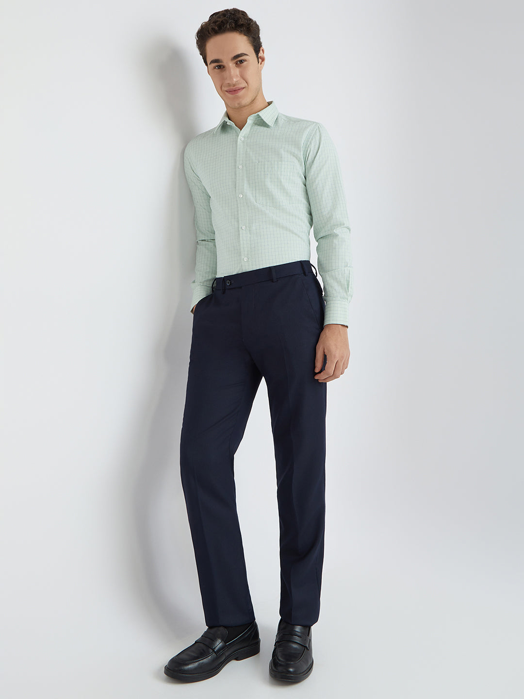 Park Avenue Men Green Checkered Slim Fit Full Sleeve Semi Cut Away Collar Shirt