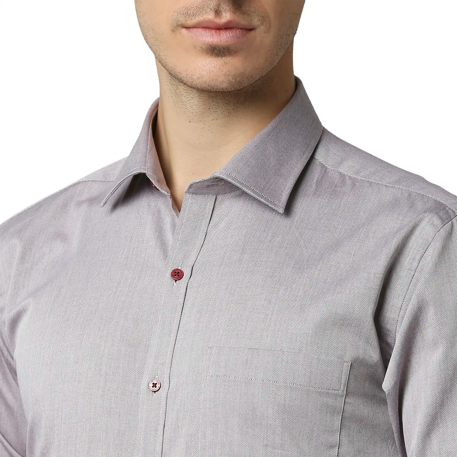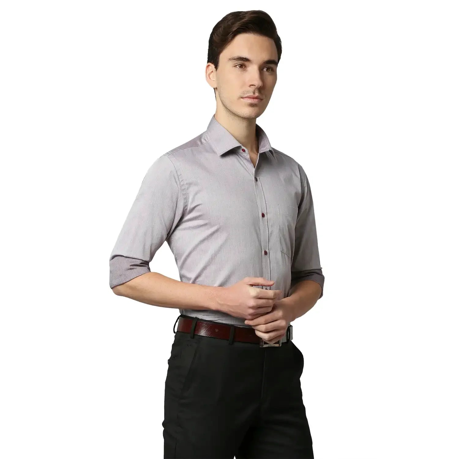 Men Grey Structured Slim Fit Cotton Formal Shirt