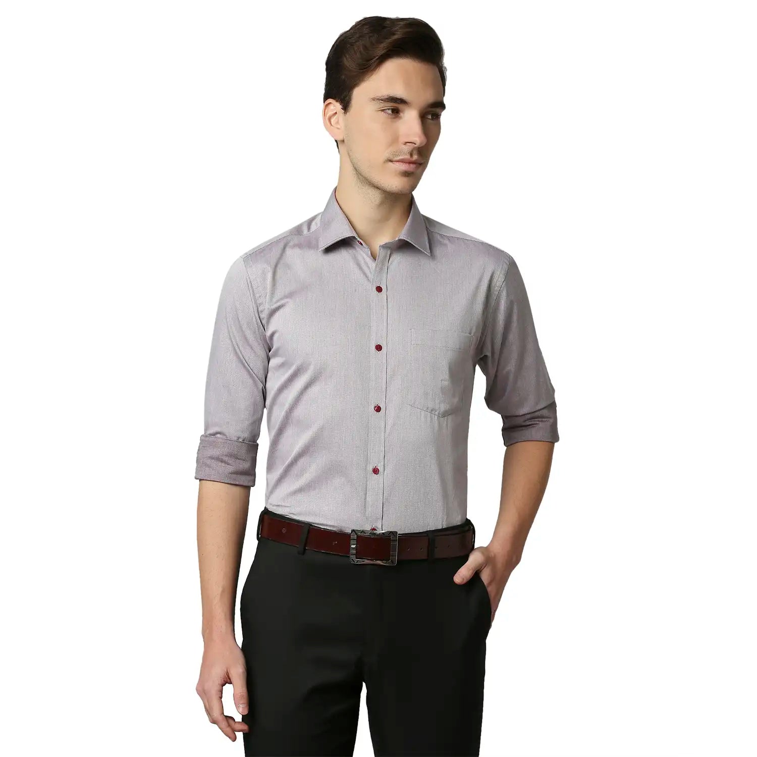 Park Avenue Men Grey Structured Slim Fit Cotton Formal Shirt