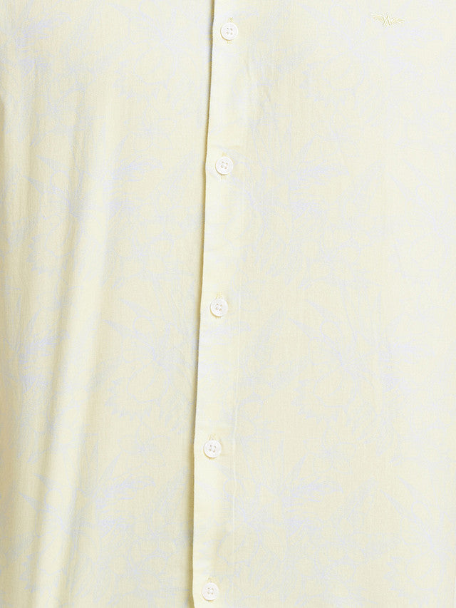 Men Yellow Printed Slim Fit Full Sleeve Cut Away Collar Shirt
