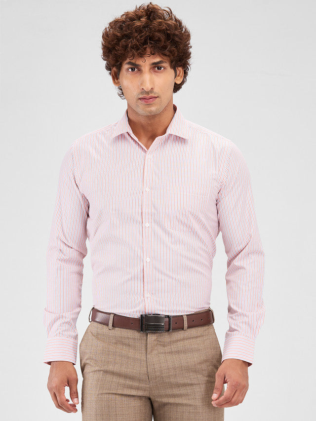 Park Avenue Orange Stripe Slim Fit Cotton Blend Formal Shirt