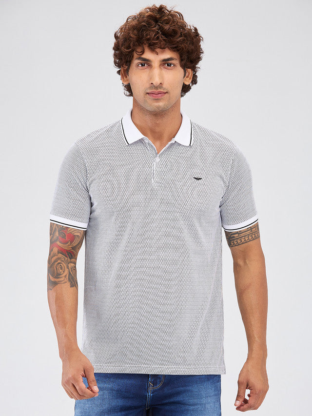 Park Avenue White Printed Slim Fit Cotton Blend T-Shirt