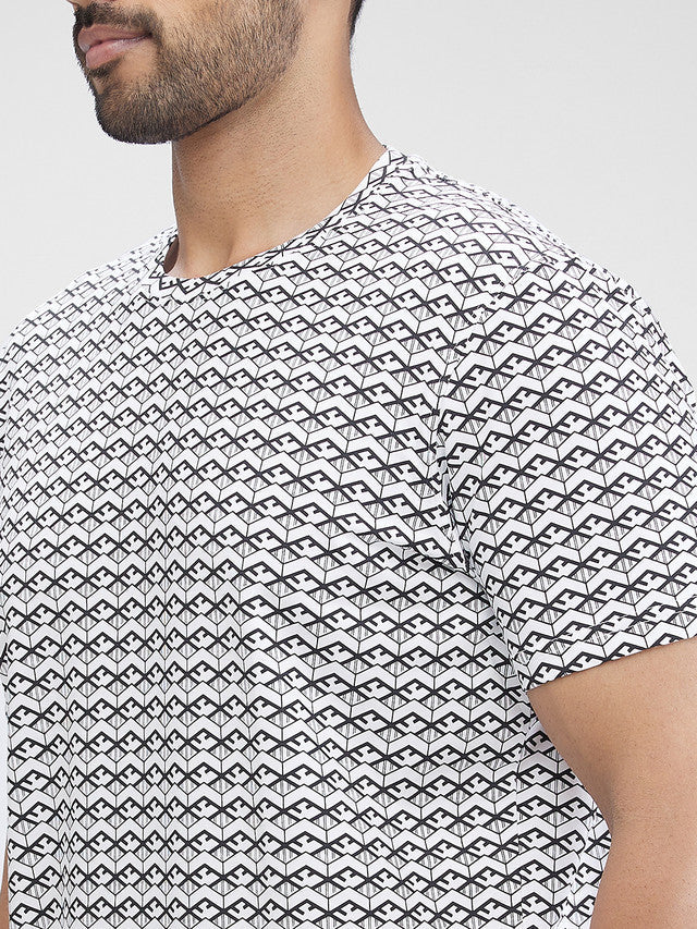 Men White Print Slim Fit Cotton Blend Crew Neck Collar T-Shirt