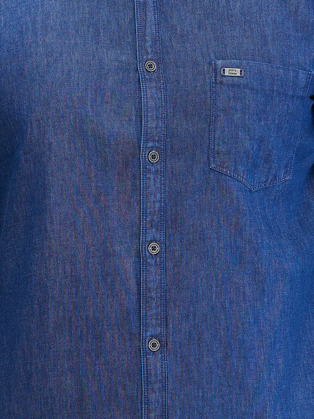 Parx Blue Solid Slim Fit Cotton Casual Shirt