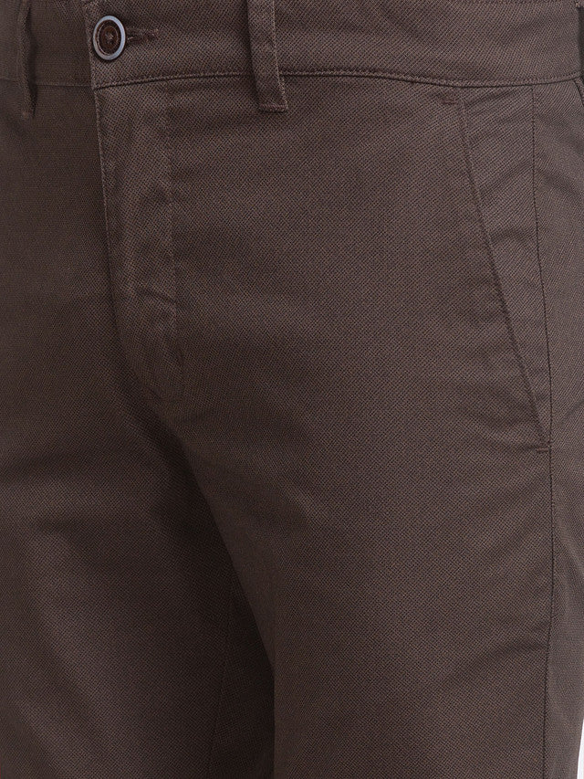 Parx Brown Printed Low Rise Tapered Fit Cotton Blend Trouser