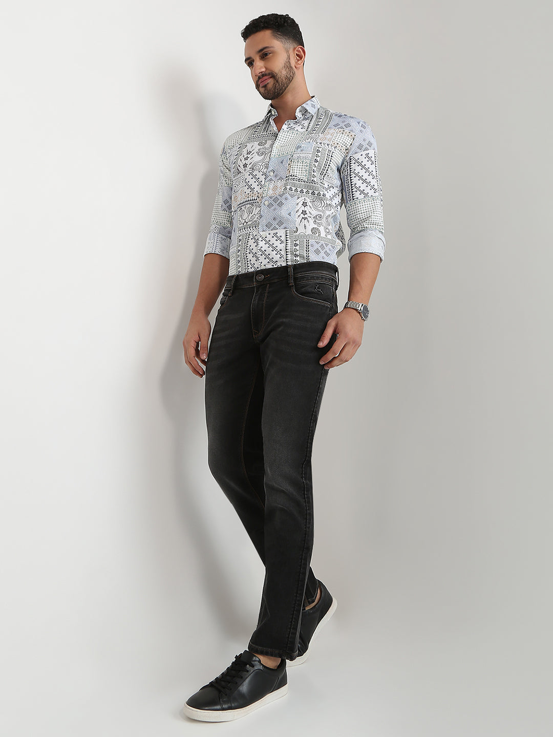 Parx Men Black Knitted Low Rise Tapered Fit Cotton Blend Jeans