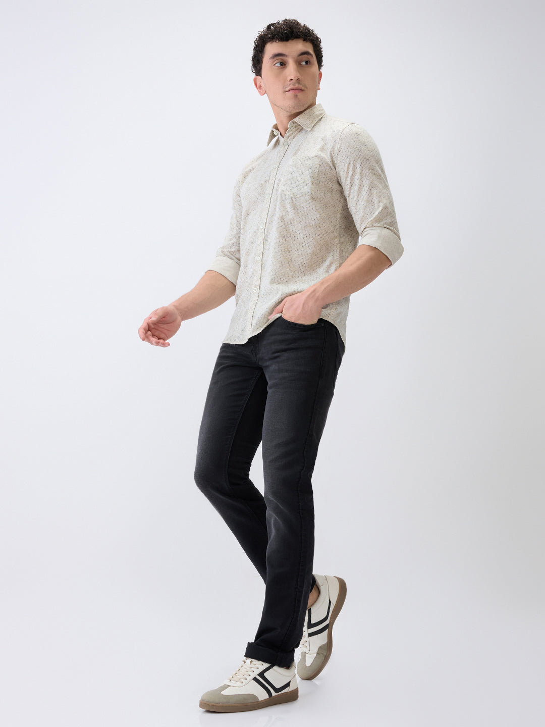 Men Black Knitted Low Rise Tapered Fit Cotton Blend Jeans
