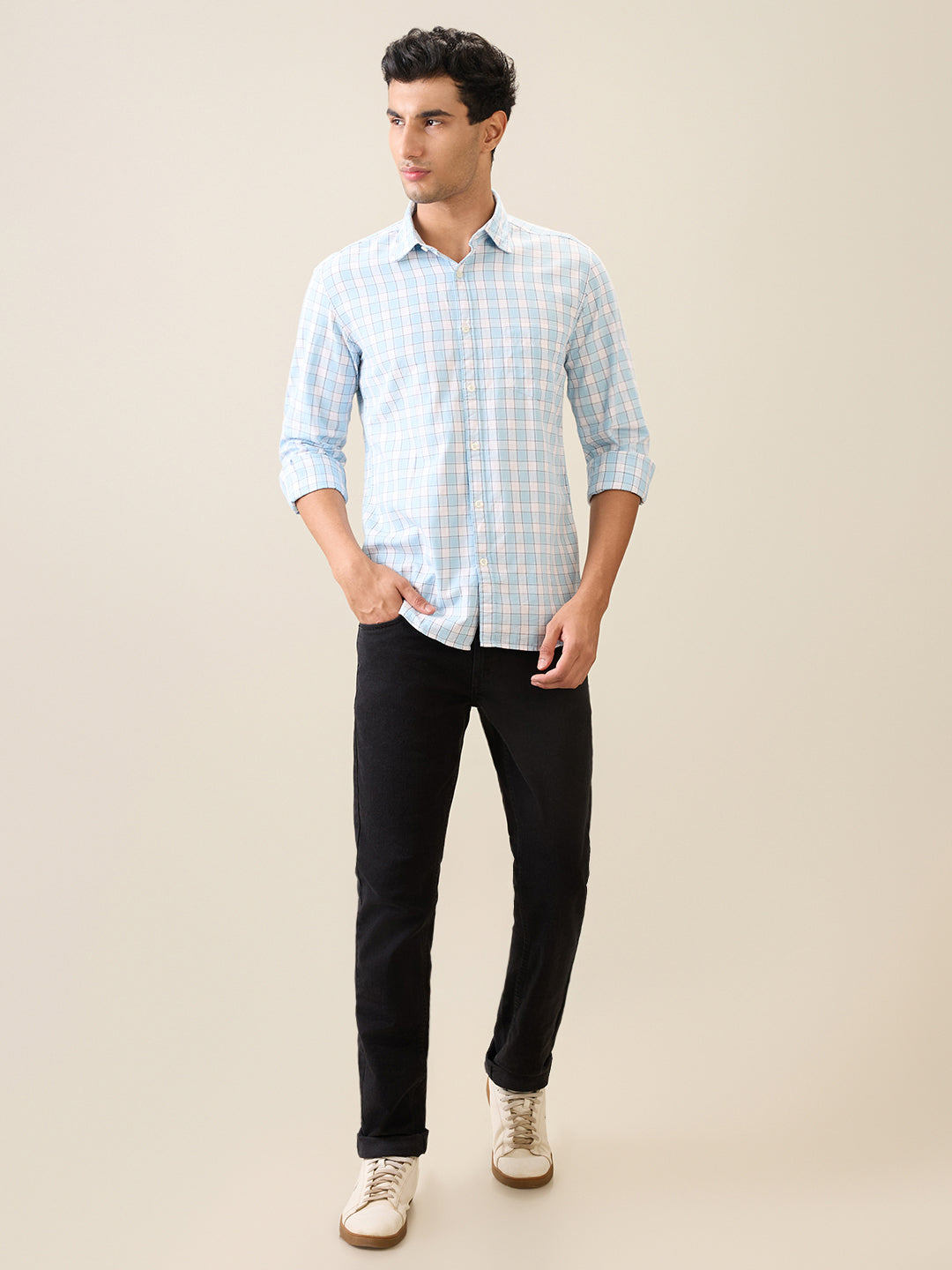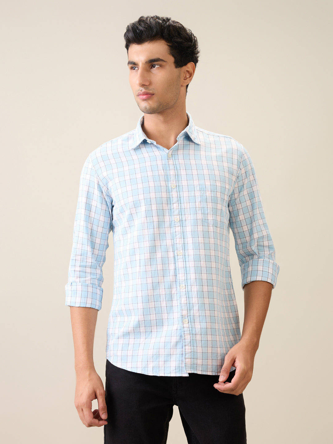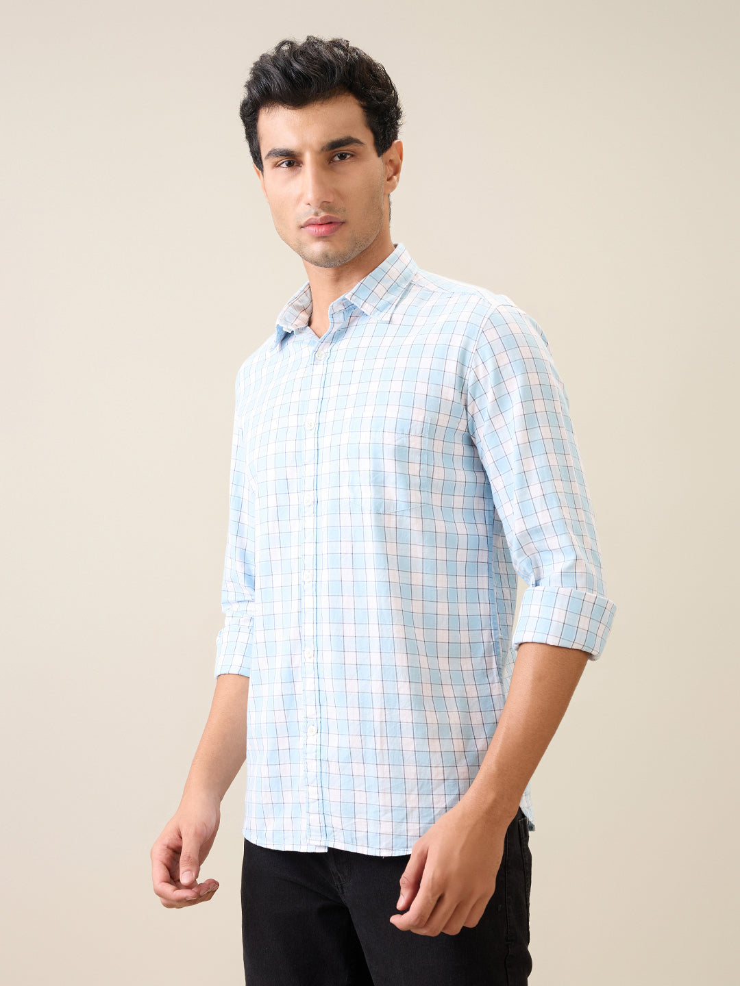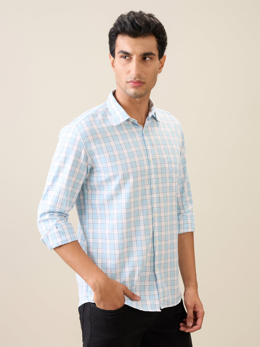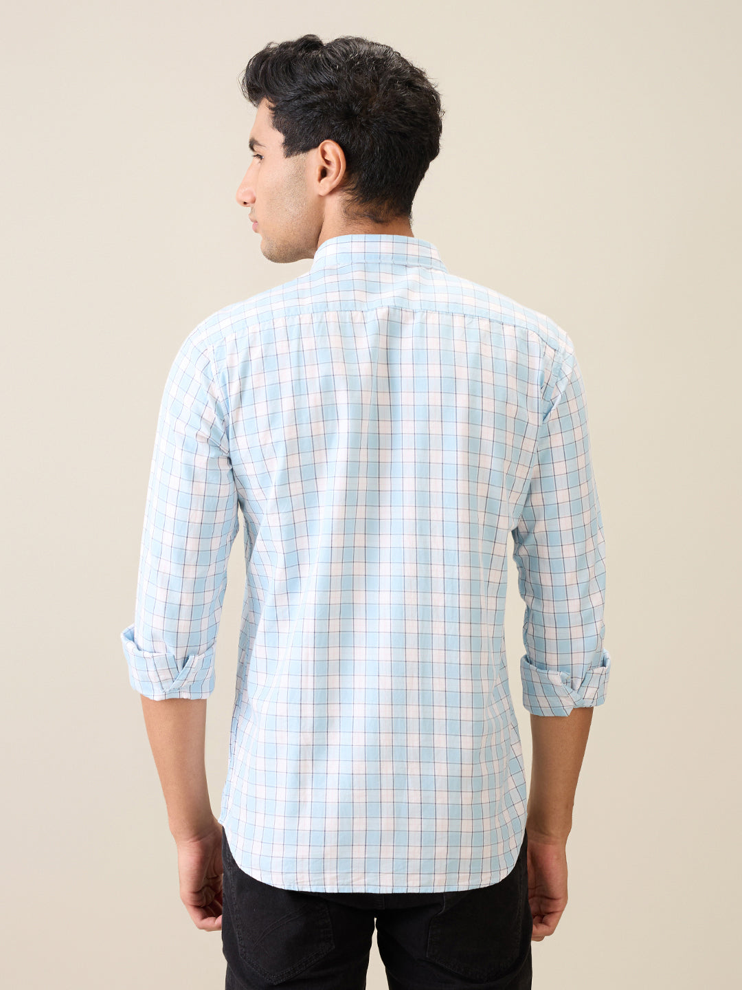 Men Blue Checks Slim Fit Cotton Casual Shirt