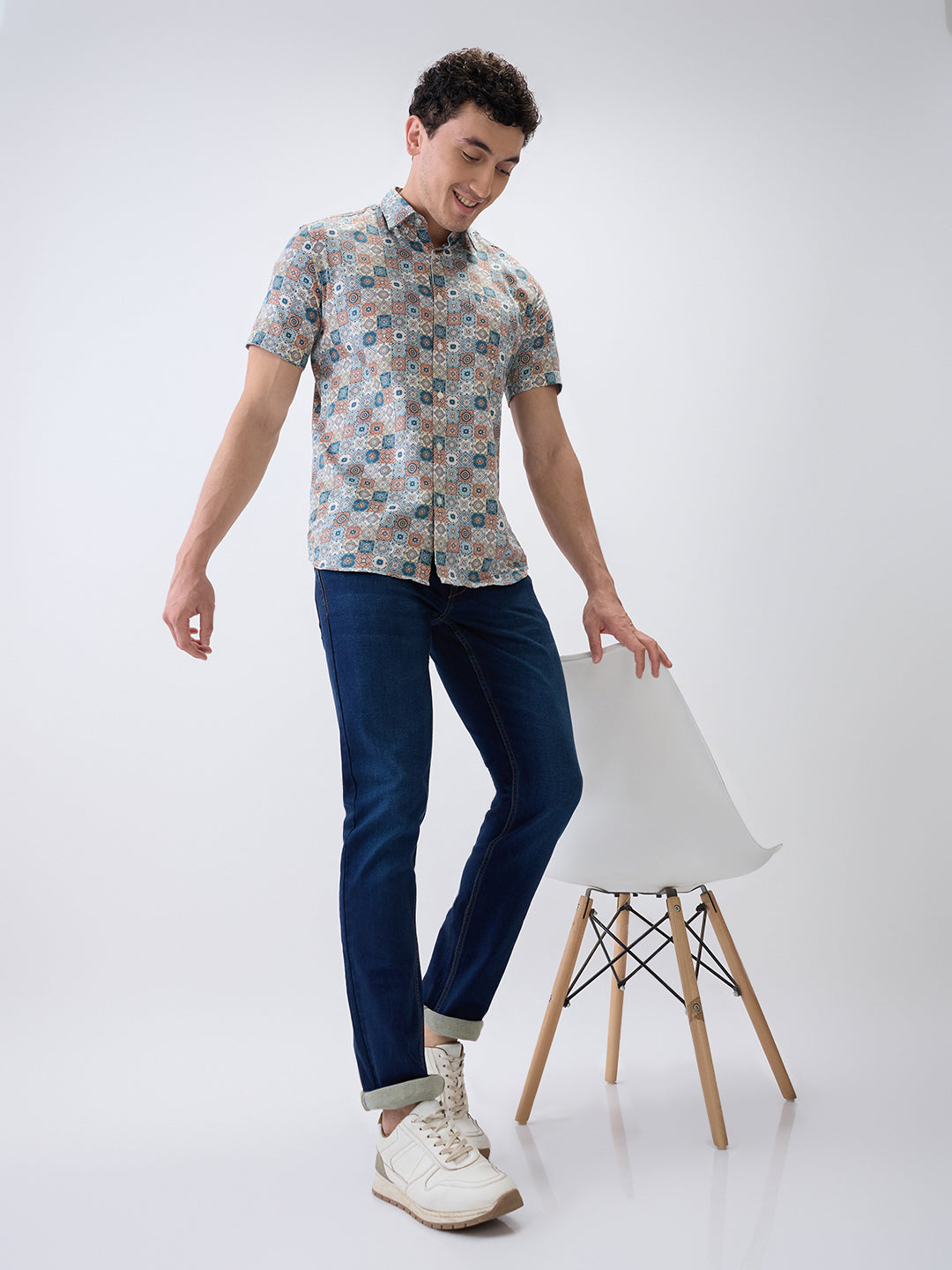 Parx Men Blue Knitted Low Rise Tapered Fit Cotton Blend Jeans