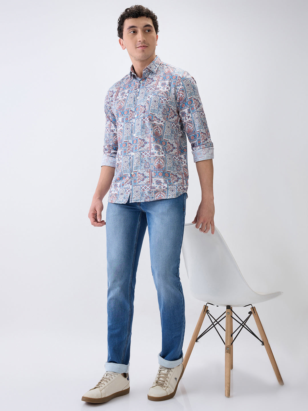 Parx Men Blue Knitted Low Rise Tapered Fit Cotton Blend Jeans