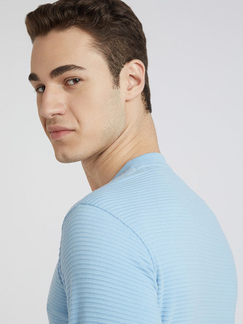 Men Blue Structure Regular Fit Cotton Sweatshirt