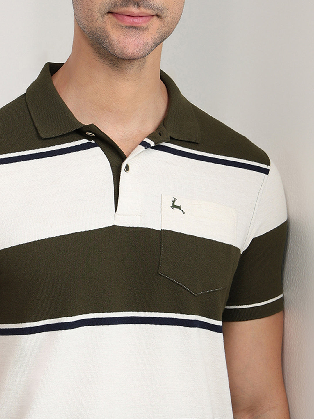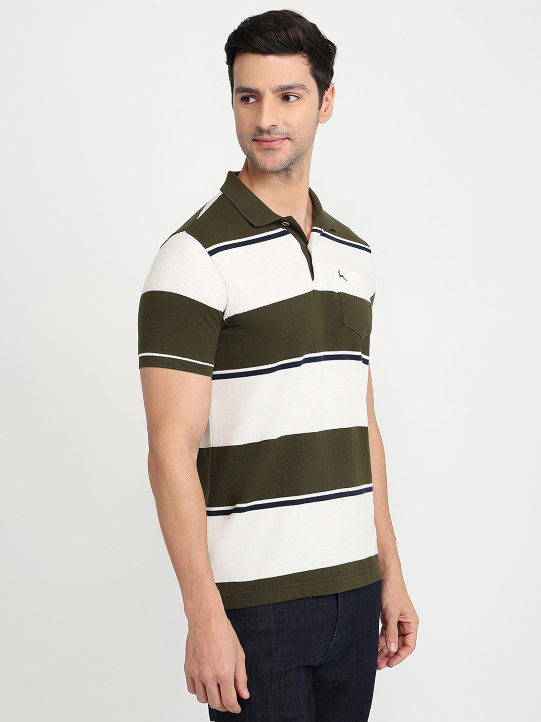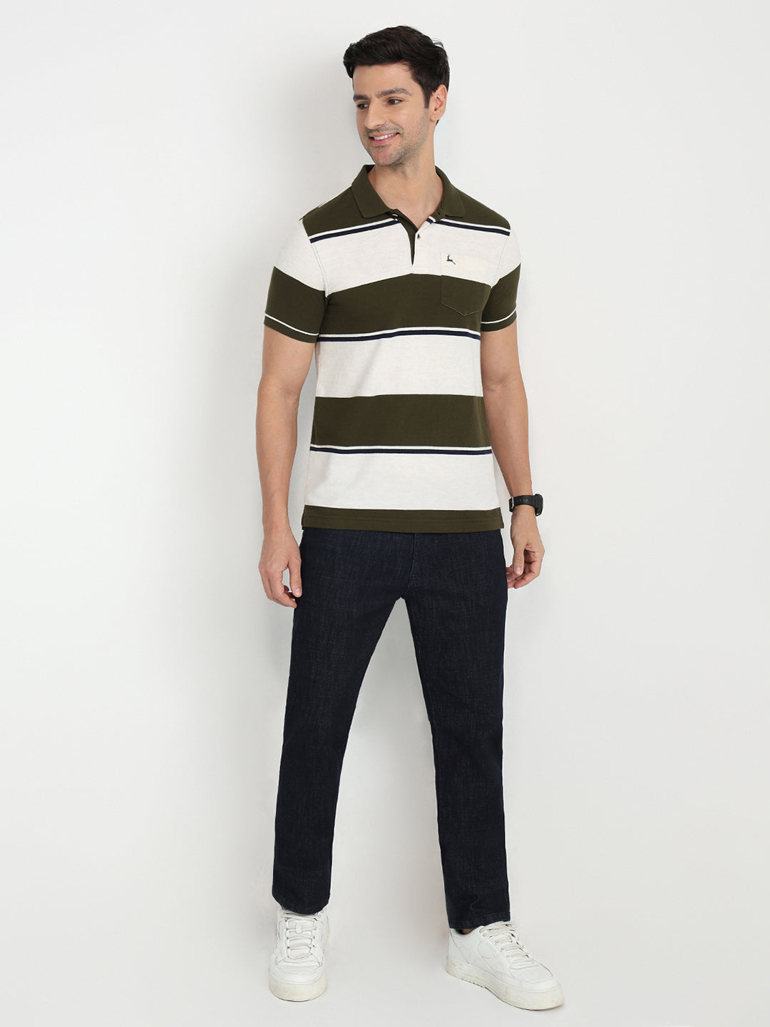 Parx Men Green Yarn Dyed Regular Fit Cotton Blend Half Sleeve T-Shirt