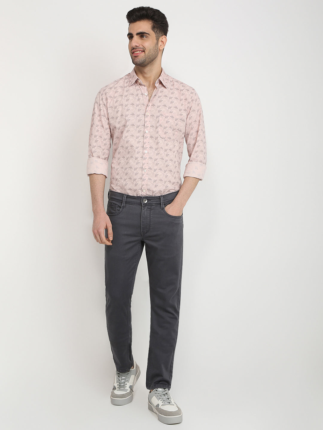 Men Grey Knitted Low Rise Tapered Fit Cotton Blend Jeans