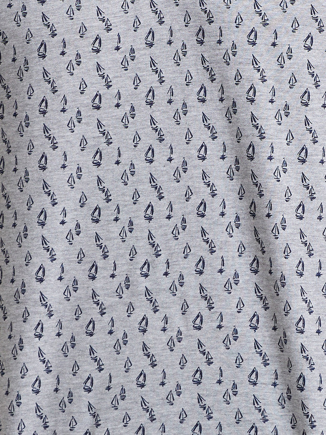 Men Grey Printed Regular Fit Half Sleeve Polo Neck T-Shirt
