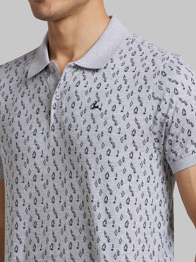 Parx Men Grey Printed Regular Fit Half Sleeve Polo Neck T-Shirt