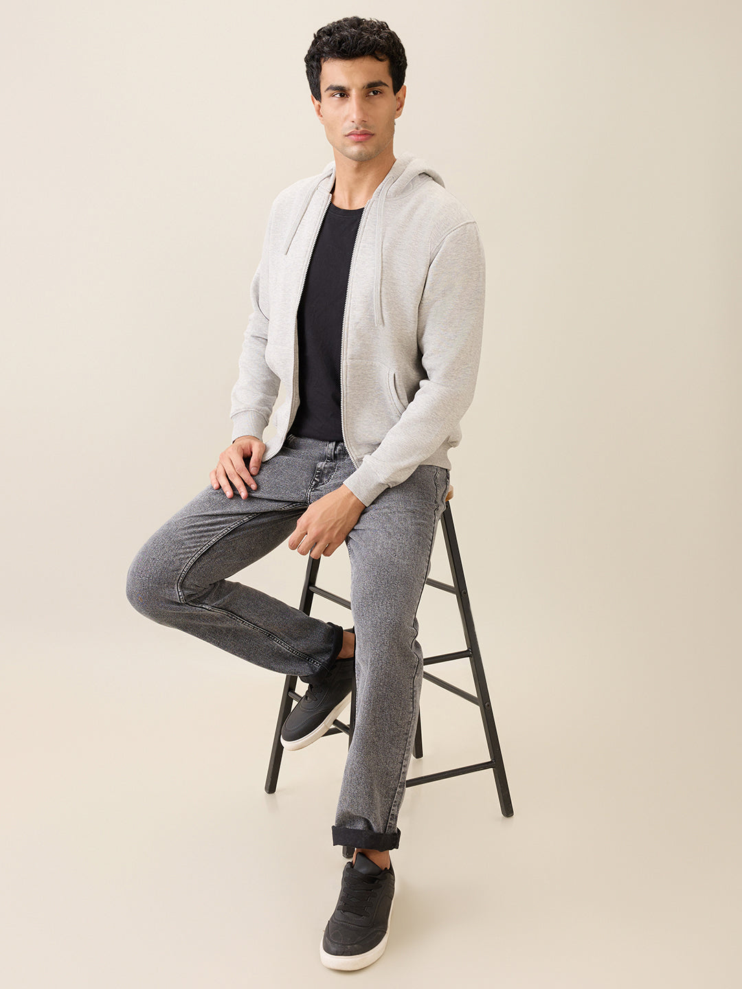Men Grey Solid Regular Fit Cotton Blend Full Sleeve Sweatshirt