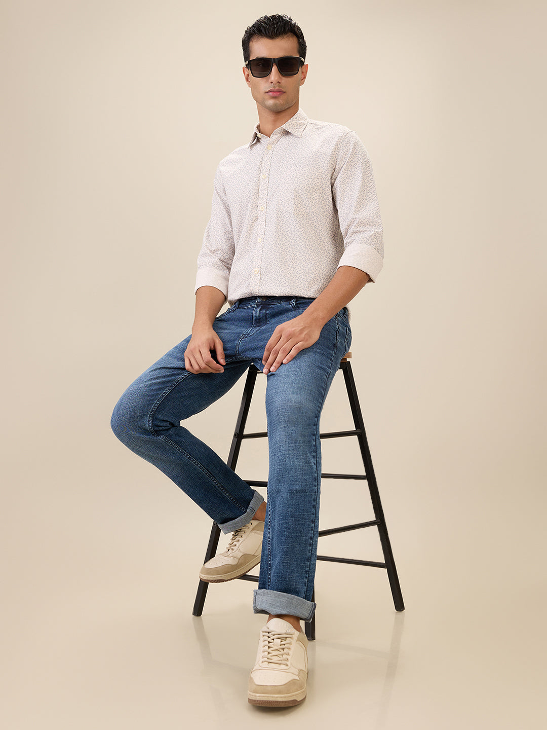 Parx Men Orange Printed Slim Fit Cotton Full Sleeve Cut Away Collar Casual Shirt