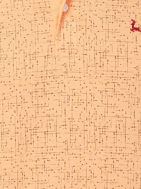 Men Orange Print Regular Fit Polo Neck Cotton T-Shirt