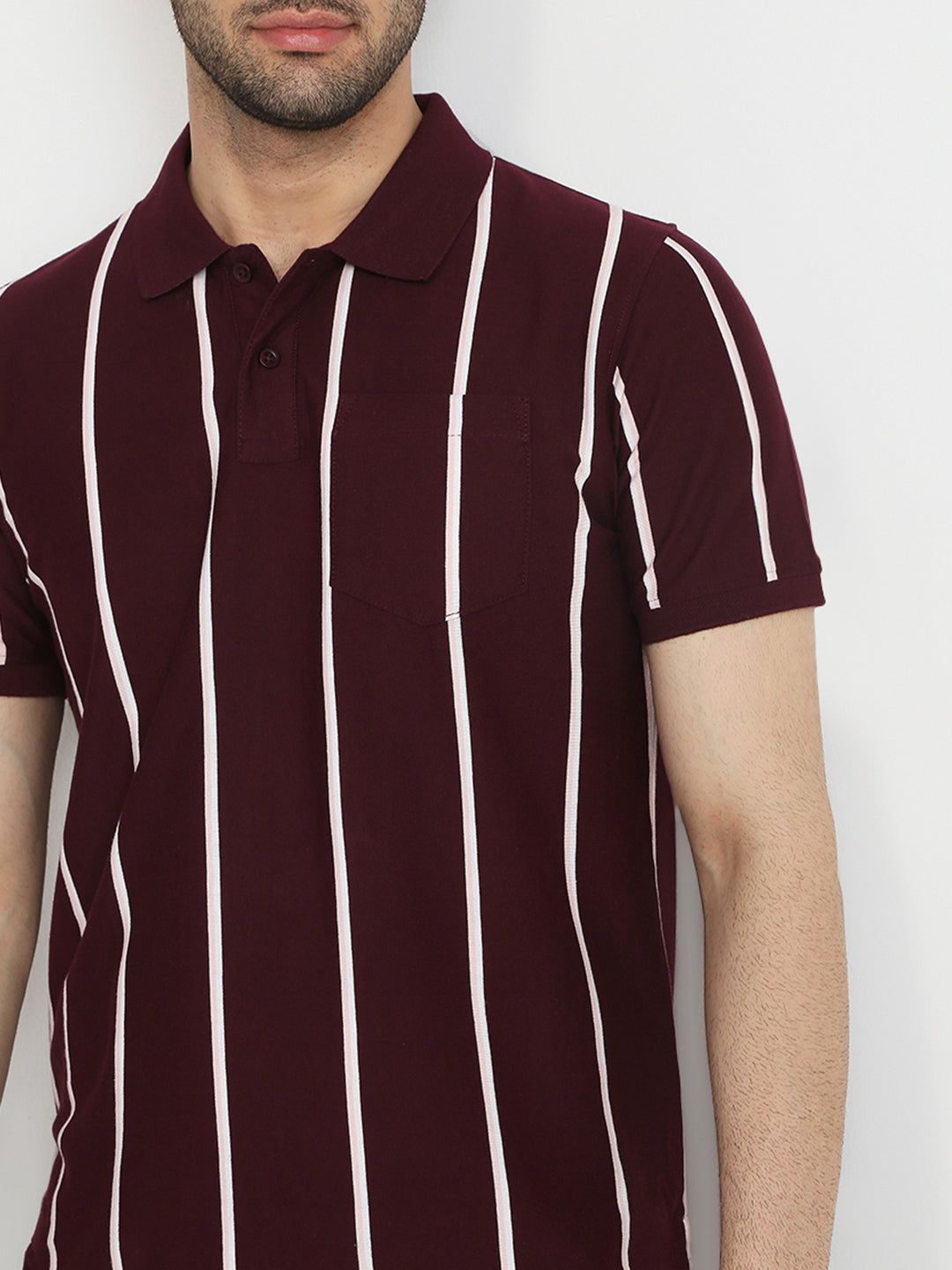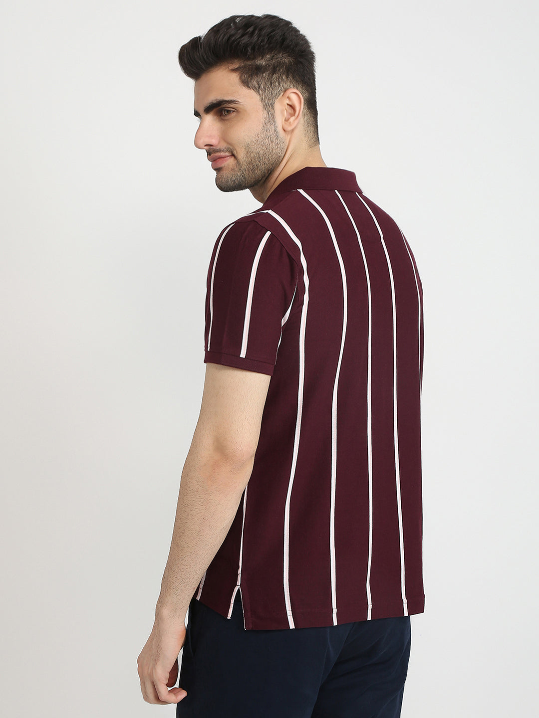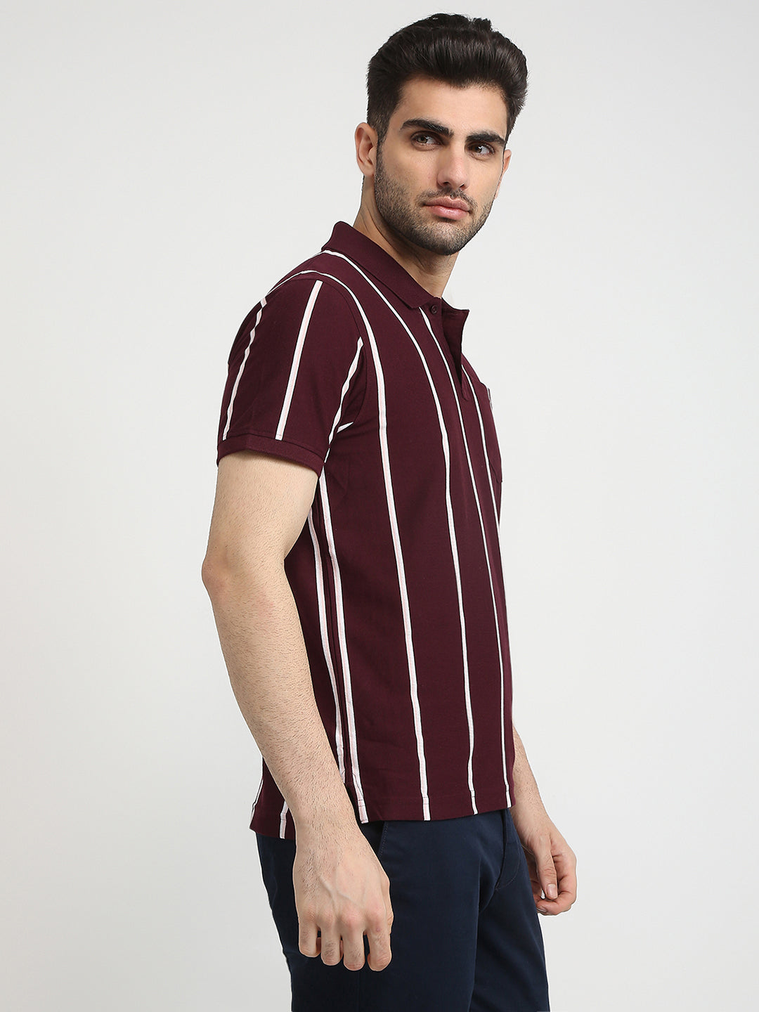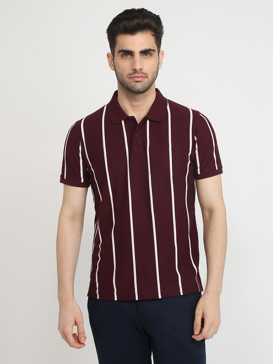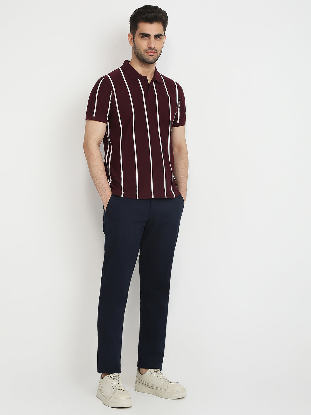 Parx Men Purple Yarn Dyed Regular Fit Cotton Blend T-Shirt