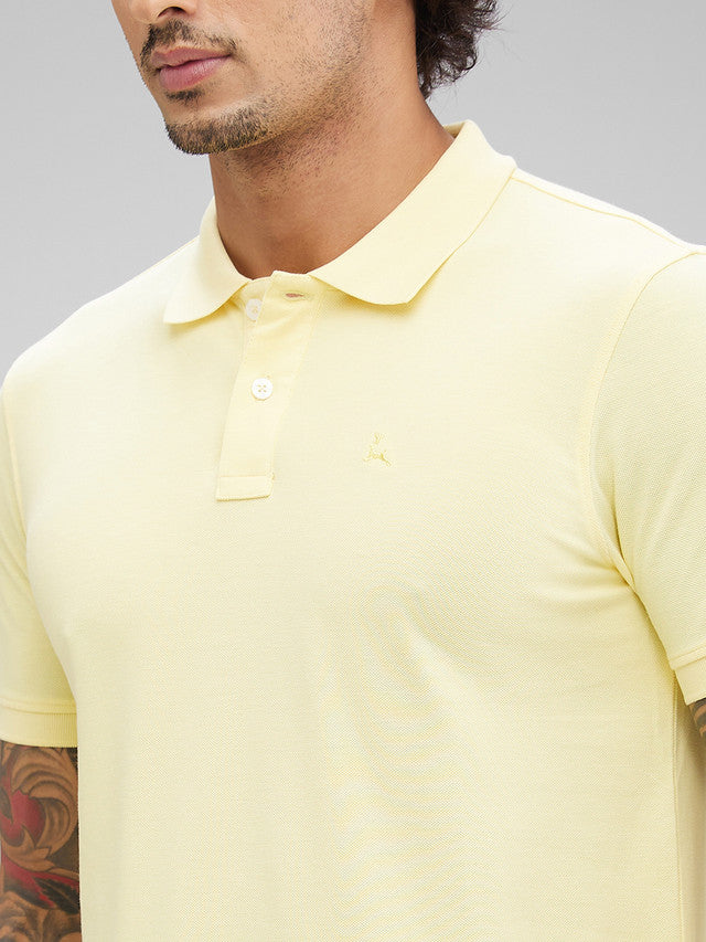 Men Yellow Solid Regular Fit Cotton Blend Polo Neck T-Shirt