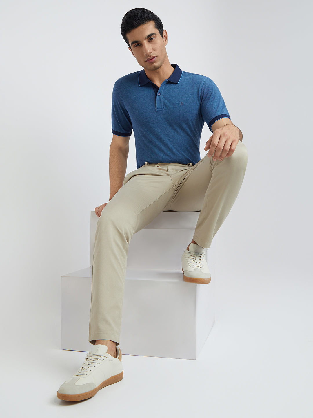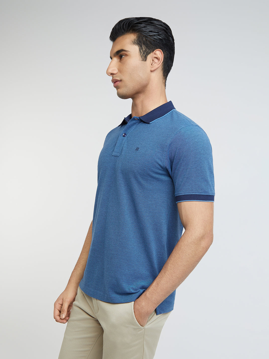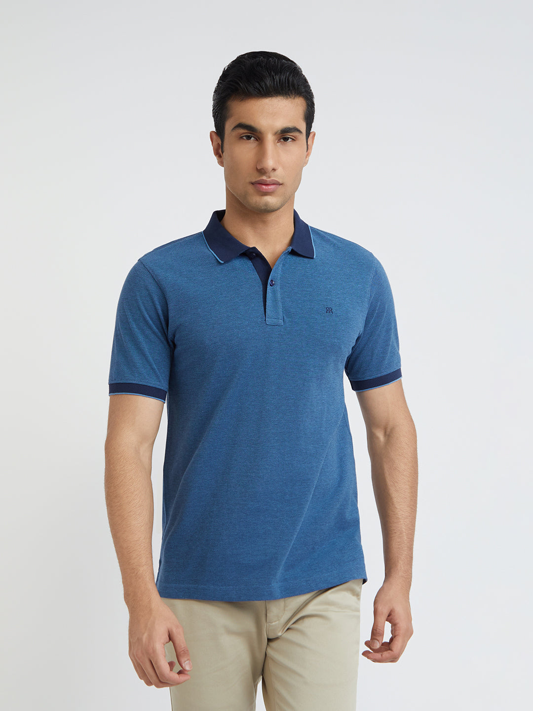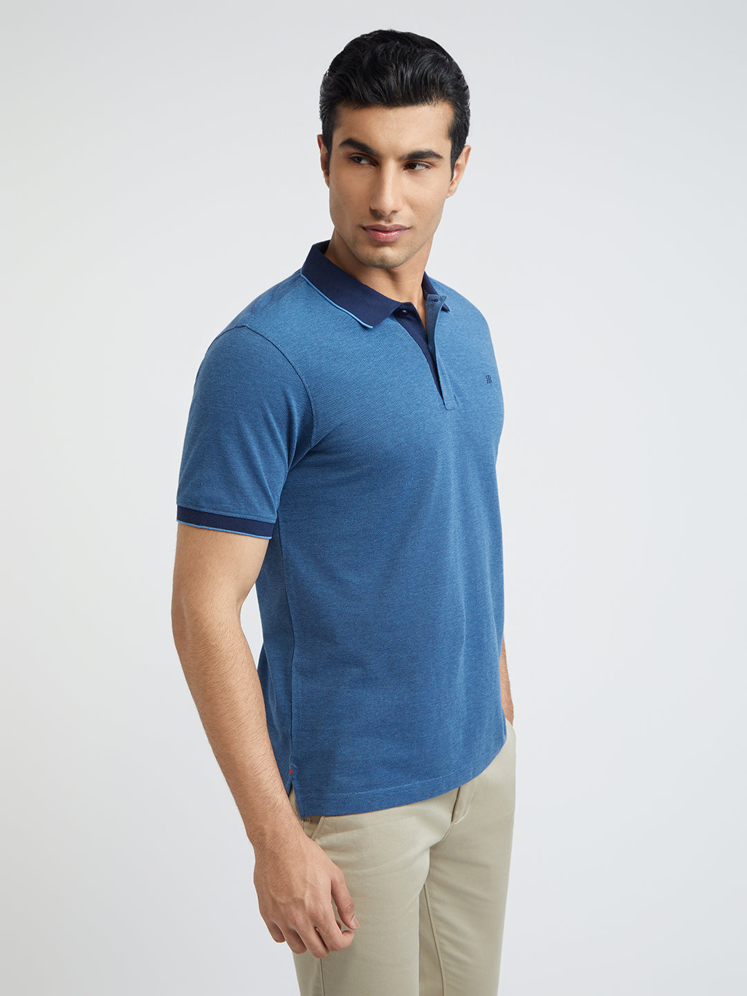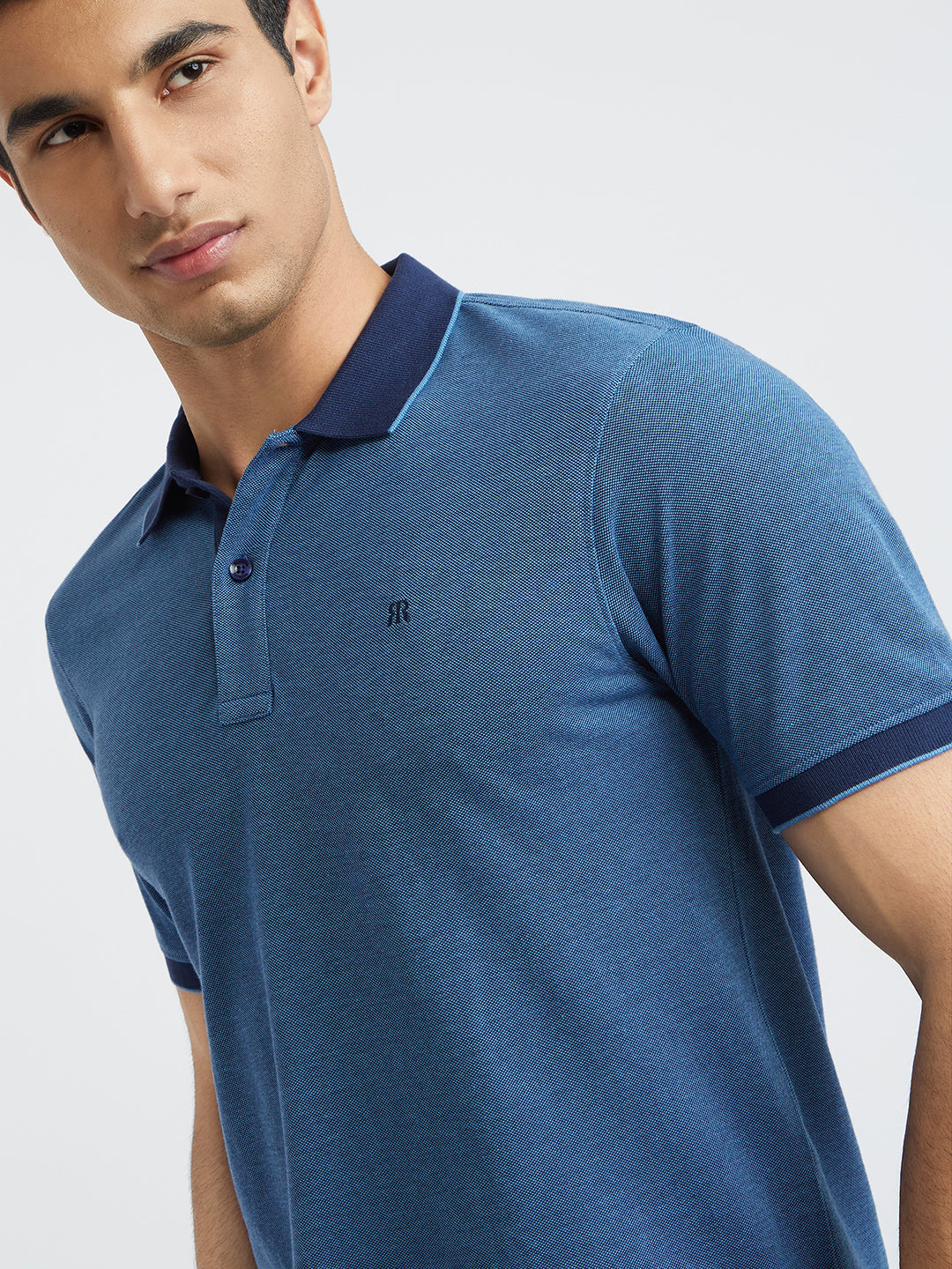 Raymond Blue Structure Modern Fit Half Sleeve Cotton T-Shirt