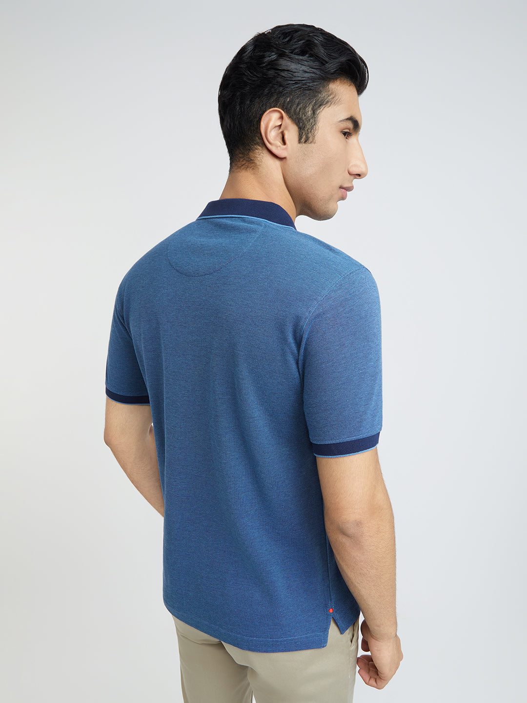 Men Blue Structure Modern Fit Cotton T-Shirt