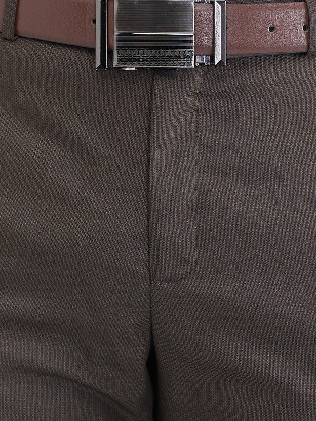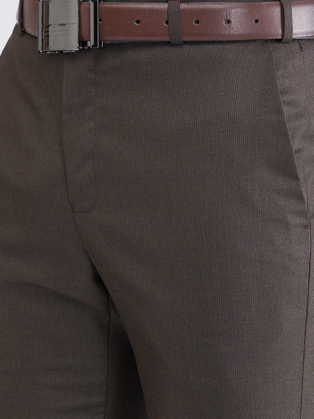 Men Brown Structure Slim Fit Polyester Blend Trouser
