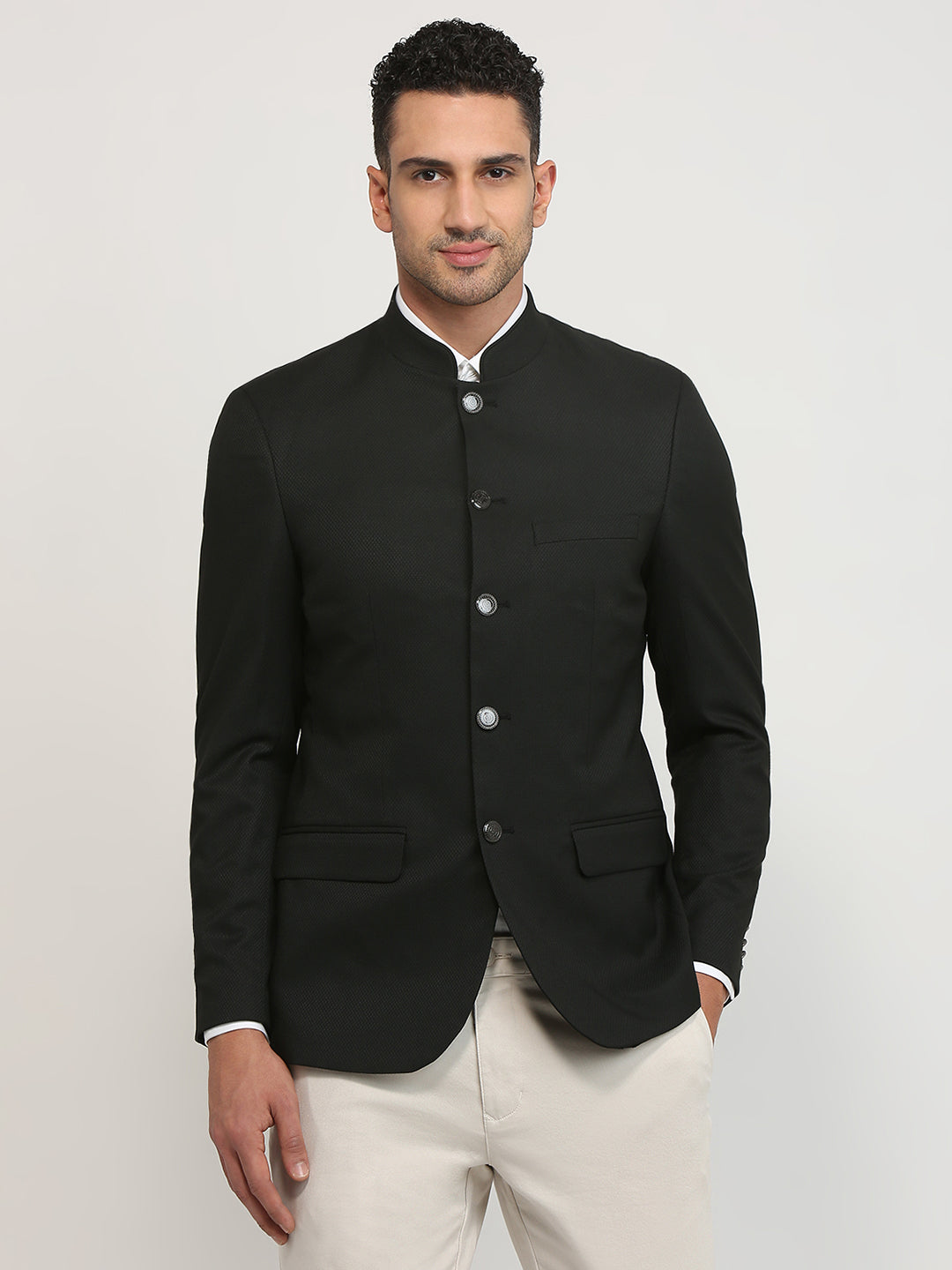 Raymond Men Black Solid Regular Fit Polyester Blend Blazer