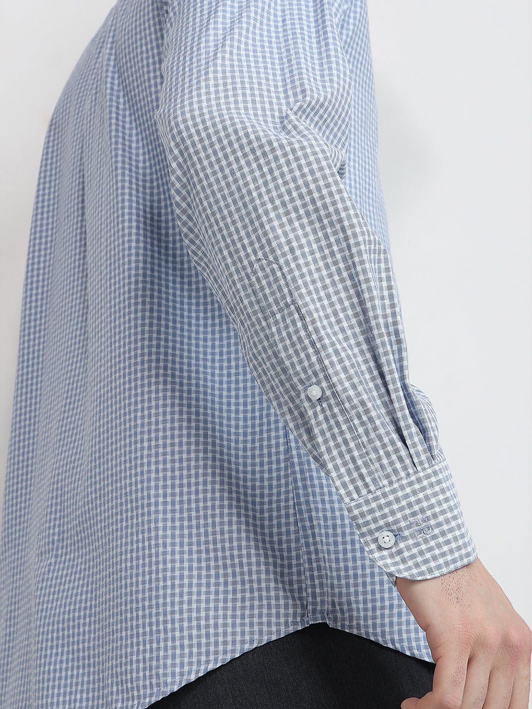 Men Blue Checks Slim Fit Bamboo Blend Full Sleeve Shirt