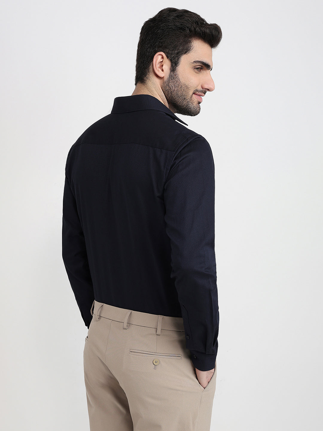 Men Blue Solid Chambray Slim Fit Cotton Full Sleeve Formal Shirt