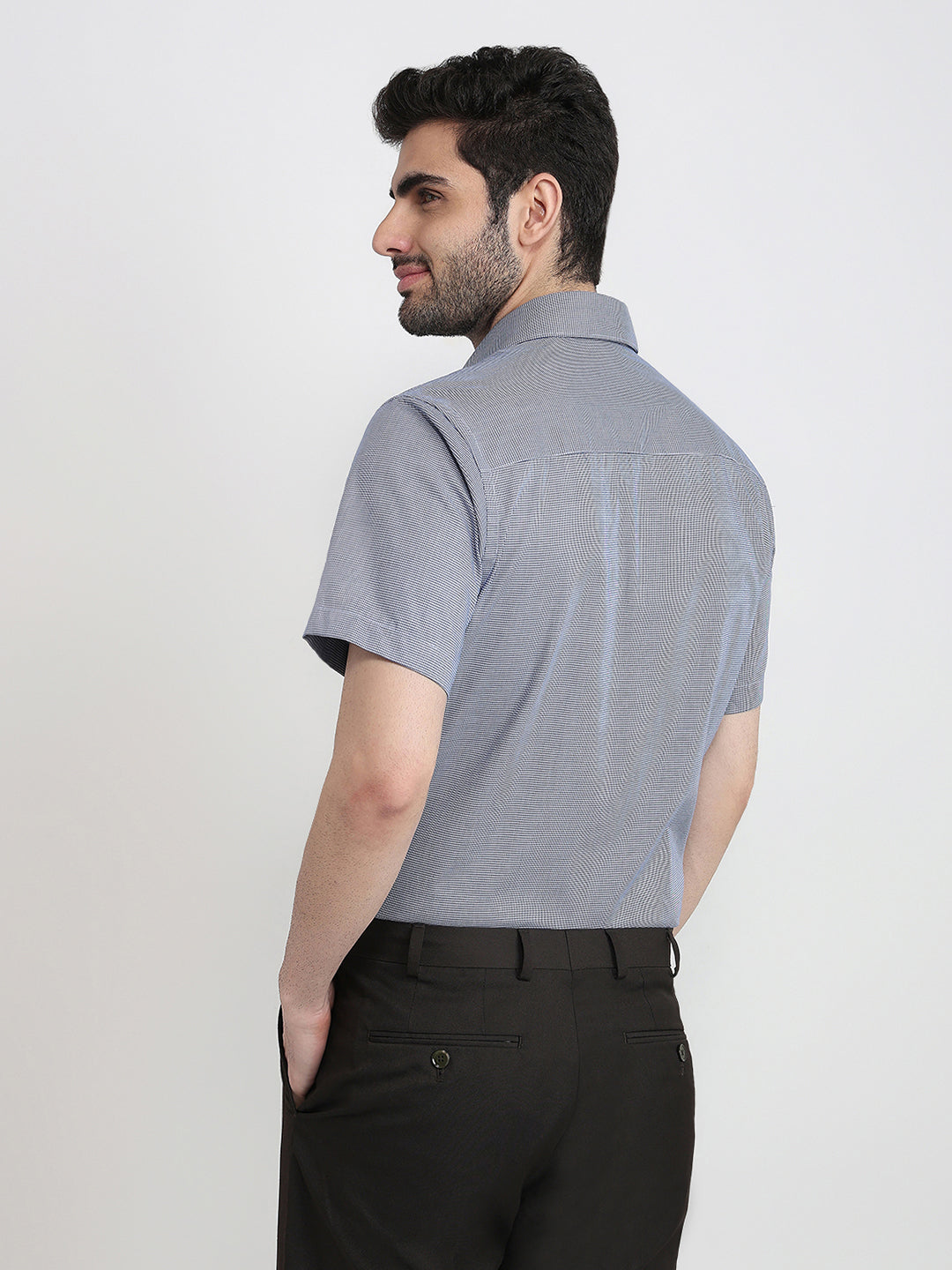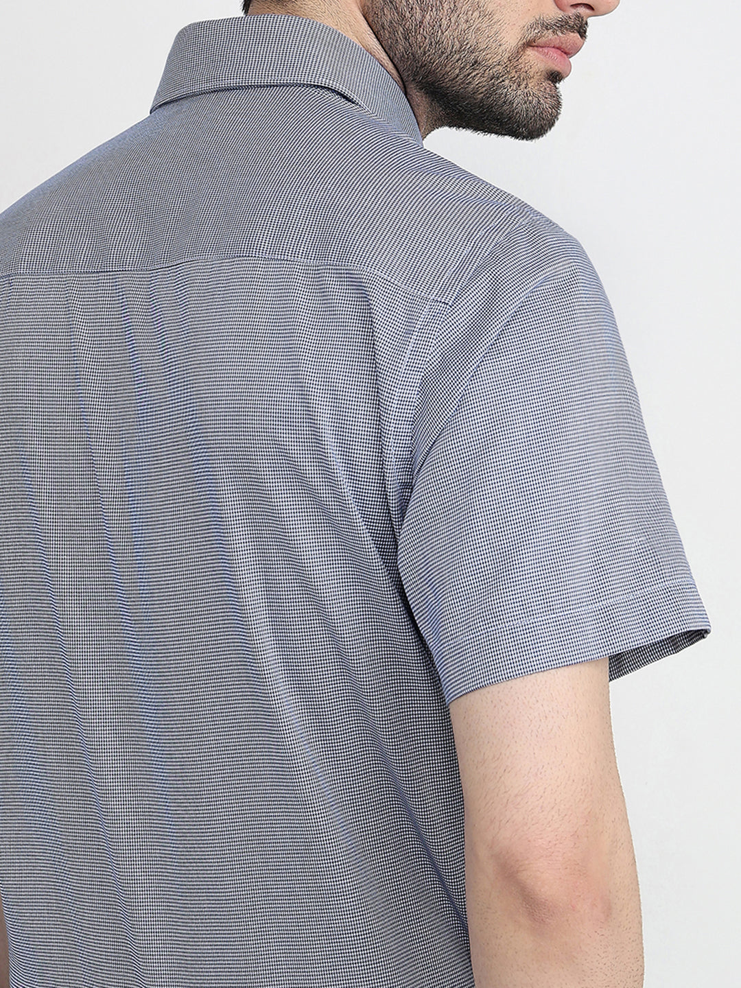 Men Blue Structure Regular Fit Cotton Half Sleeve Formal Shirt