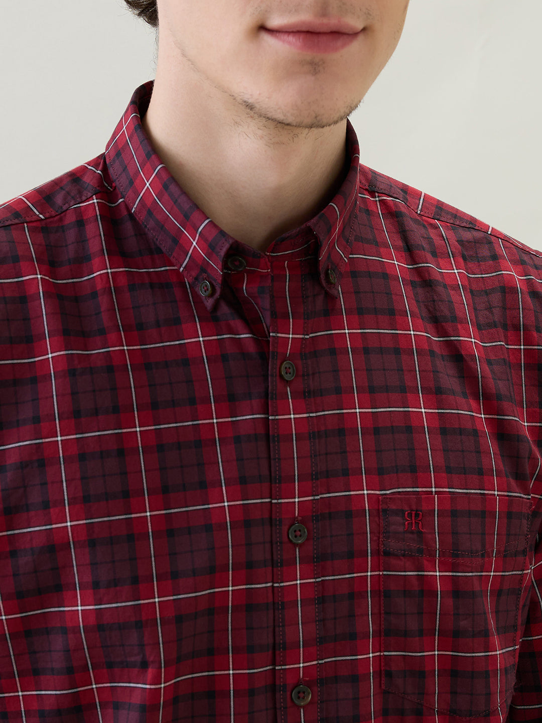 Raymond Men Brown Checks Regular Fit Cotton Full Sleeve Casual Shirt