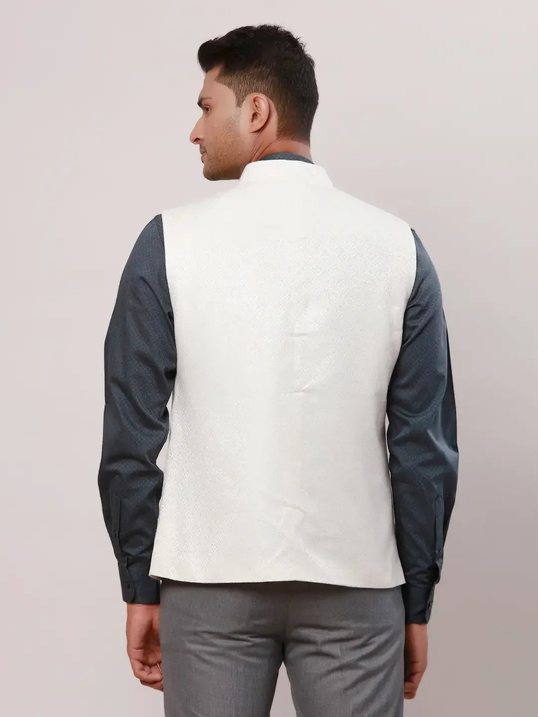 Men Brown Jacquard Contemporary Fit Polyester Blend Waist Coat