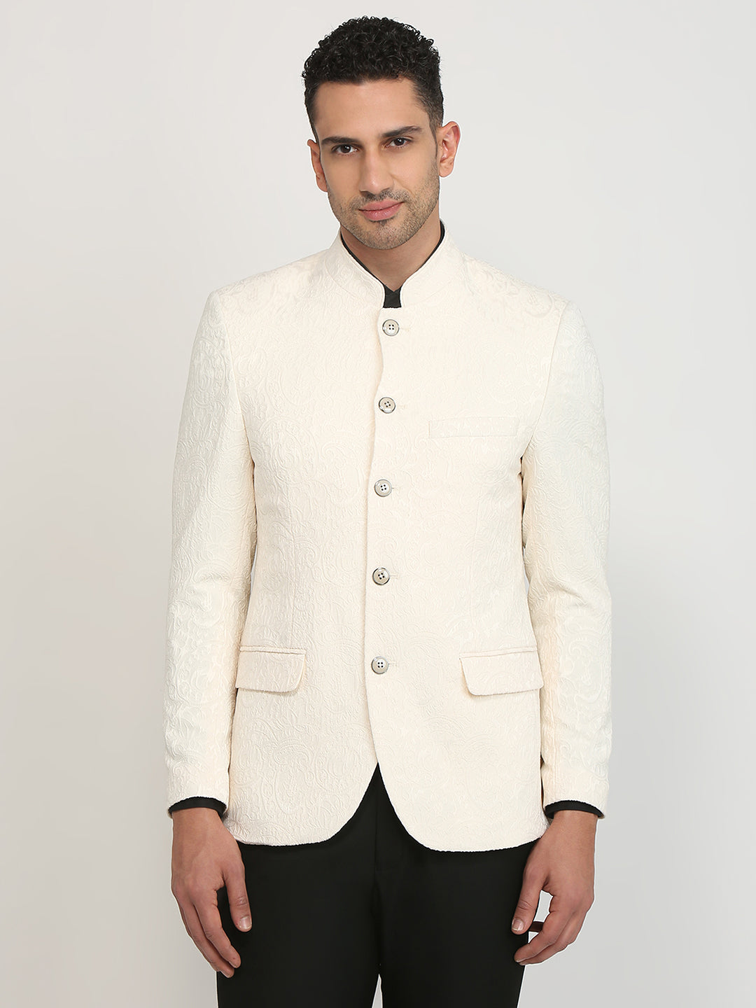 Men Brown Jacquard Regular Fit Polyester Blend Blazer
