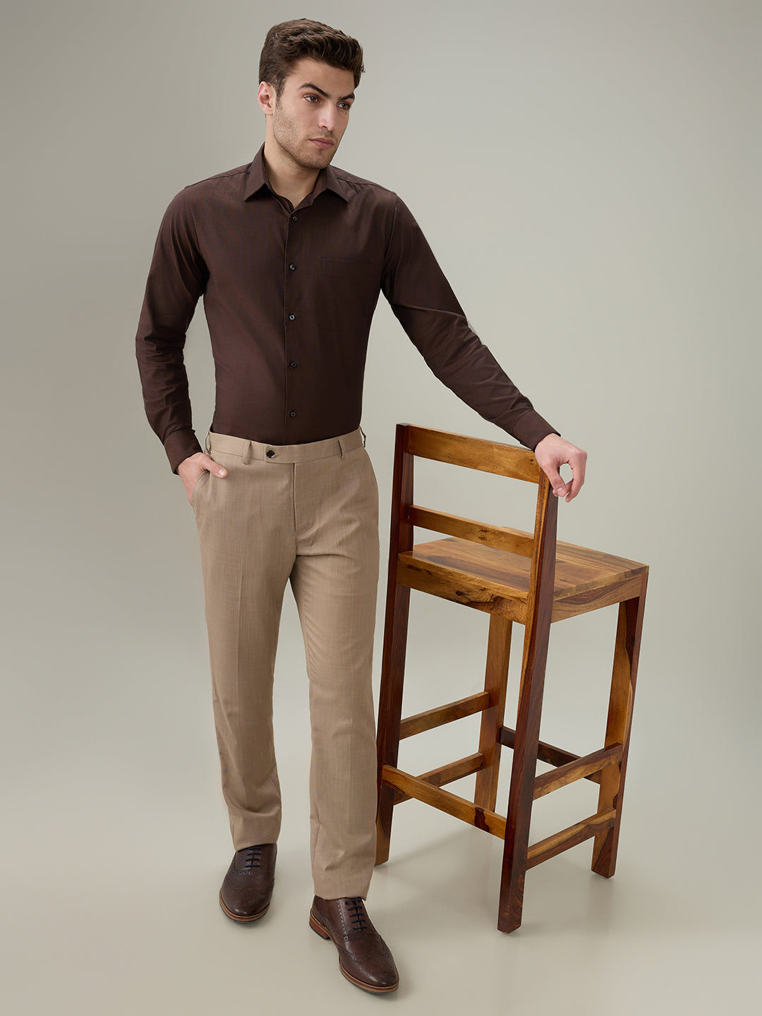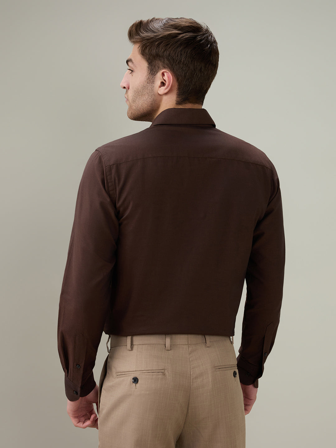 Men Brown Solid Chambray Slim Fit Cotton Full Sleeve Formal Shirt