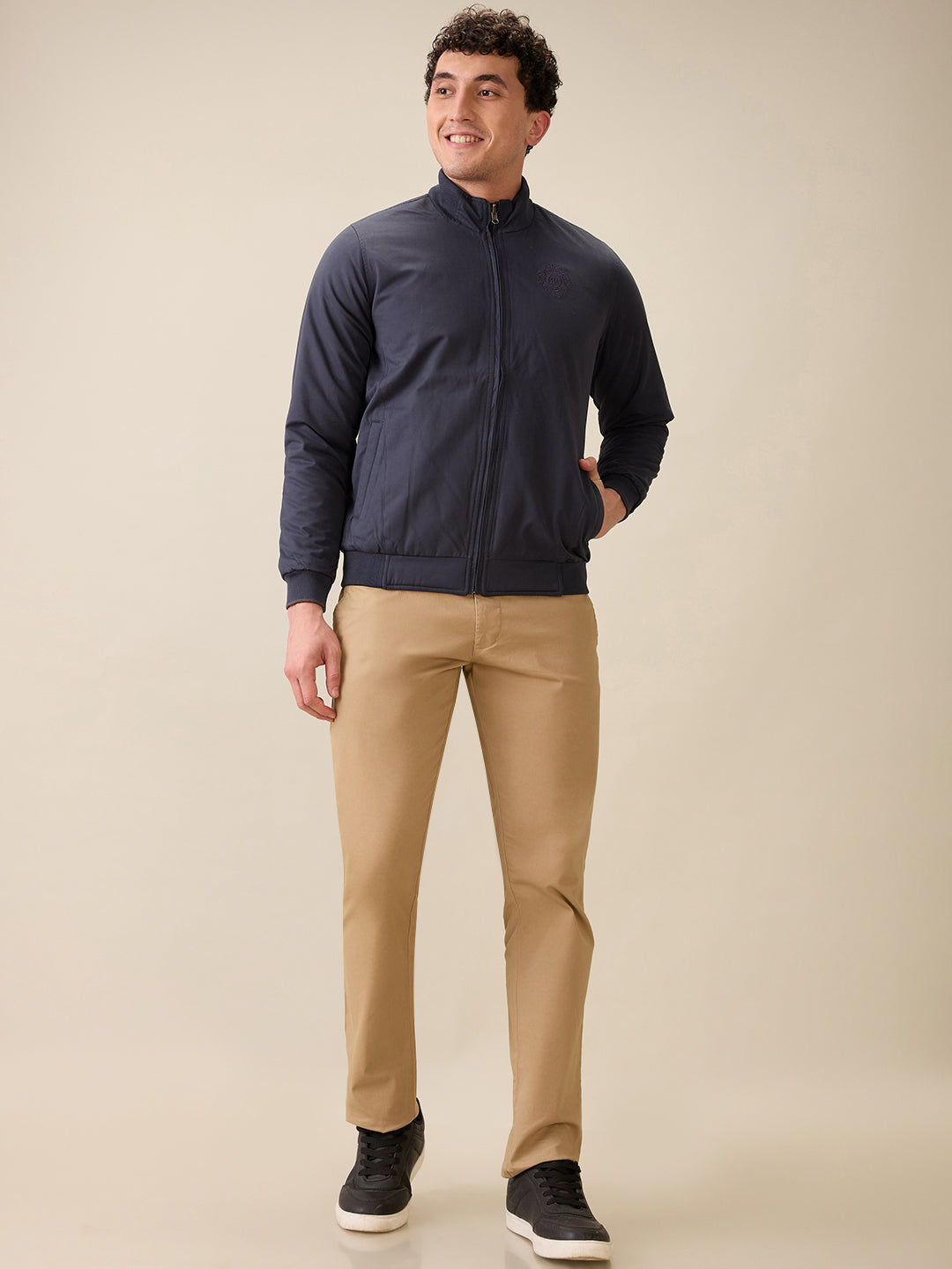 Men Grey Contemporary Fit Polyester Jacket