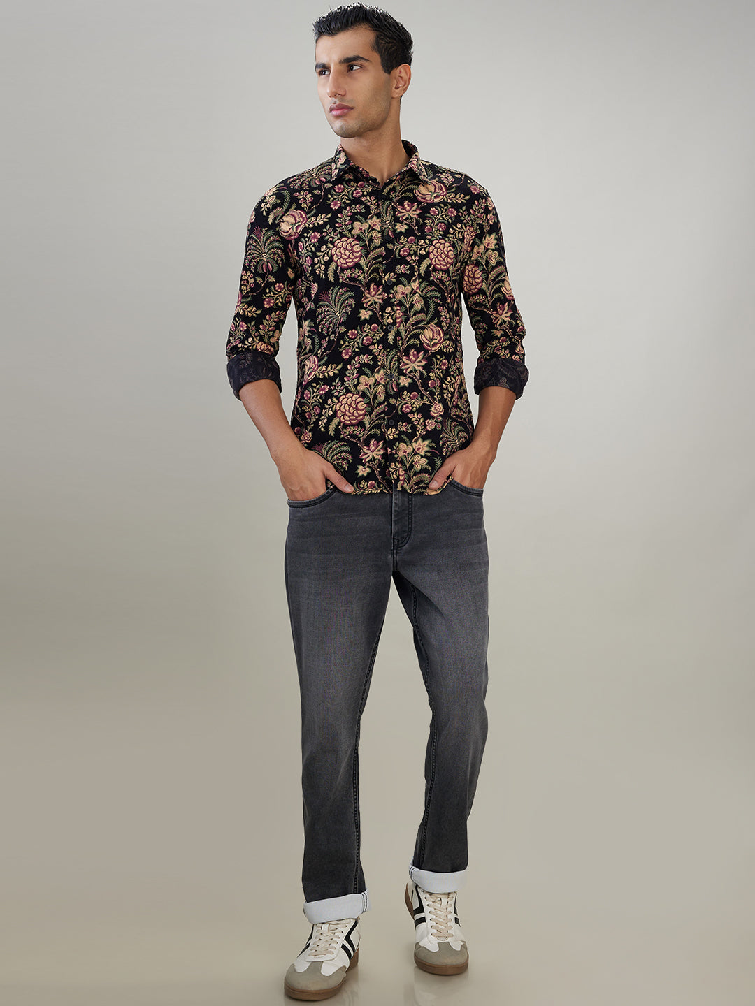 Men Grey Solid Slim Fit Cotton Blend Jeans