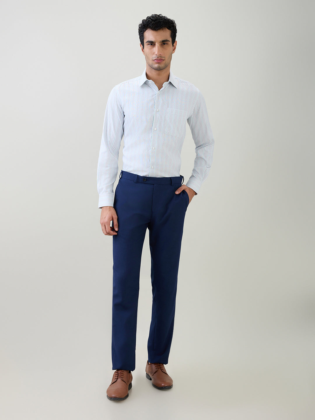 Men Grey Stripe Contemporary Fit Bamboo Blend Full Sleeve Formal Shirt