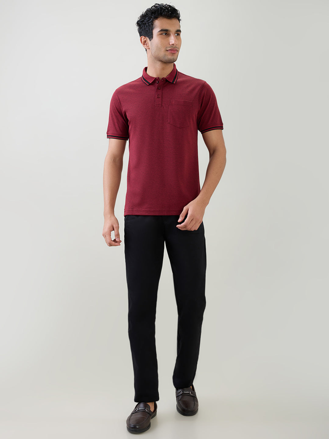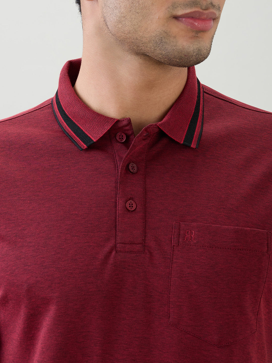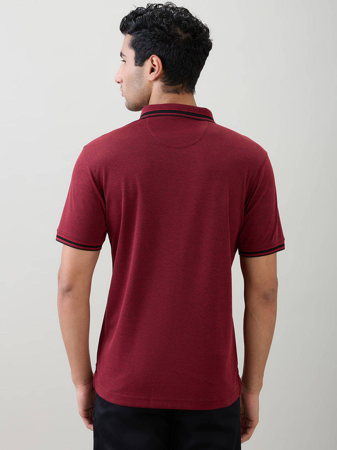 Raymond Men Maroon Two Tone Regular Fit Polyester Blend Half Sleeve T-Shirt