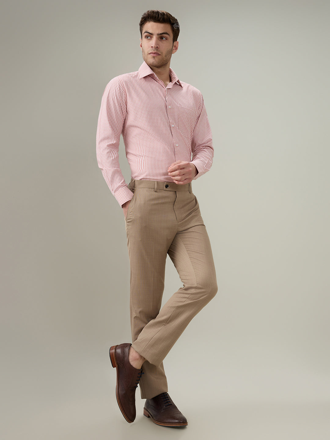 Raymond Men Orange Checks Slim Fit Bamboo Blend Full Sleeve Formal Shirt
