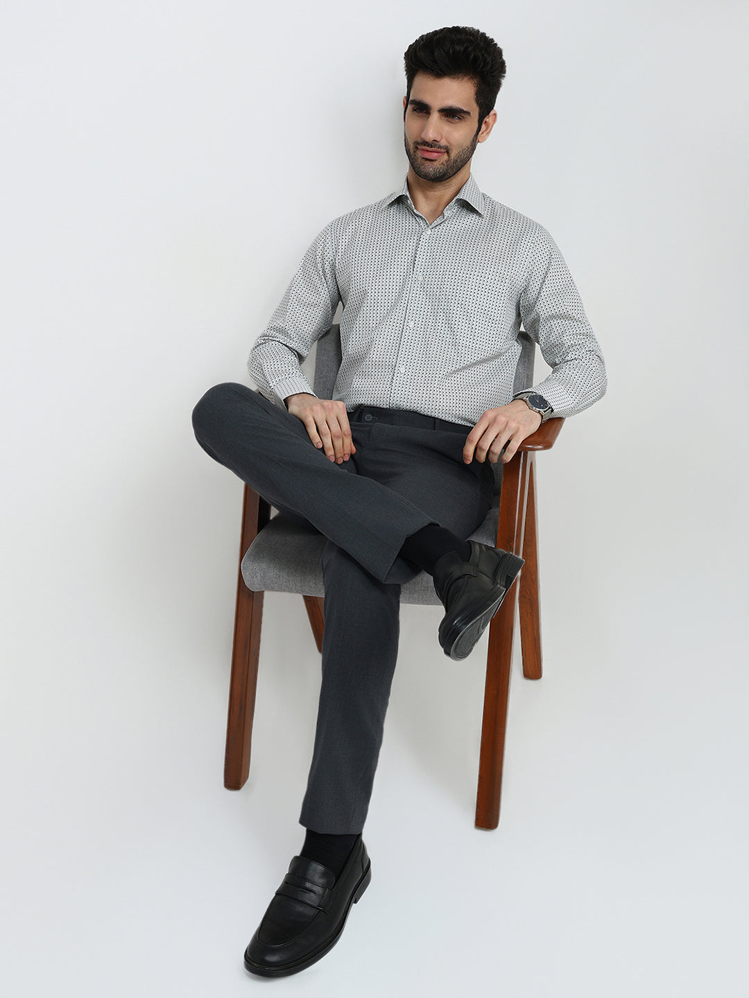 Raymond Men White Printed Regular Fit Cotton Full Sleeve Formal Shirt