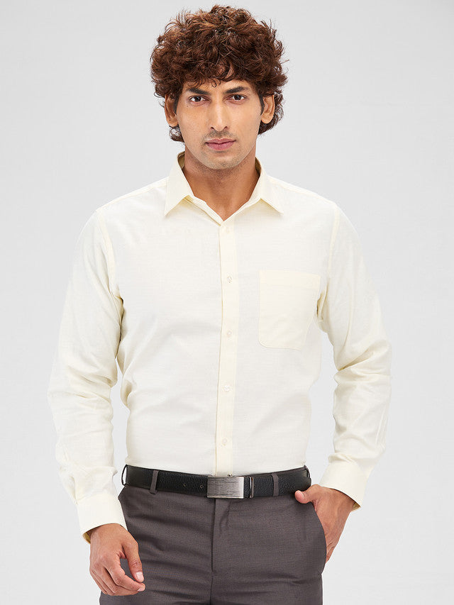 Raymond Yellow Solid Slim Fit Cotton Formal Shirt