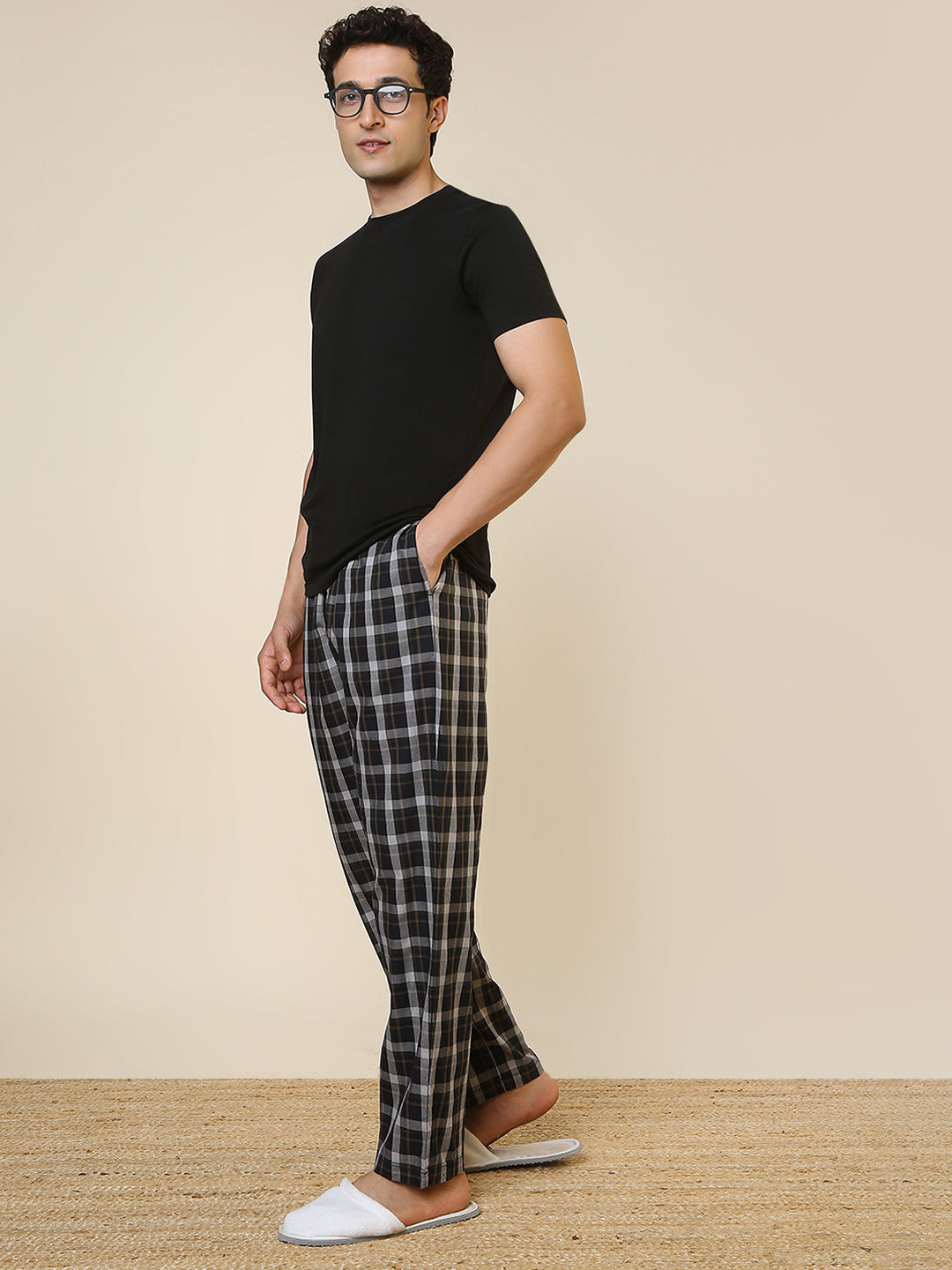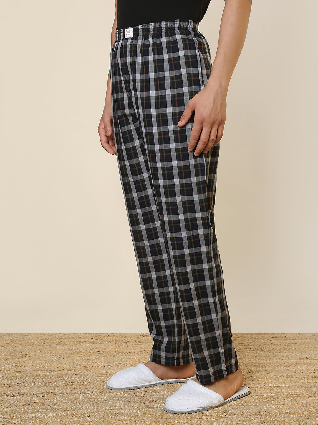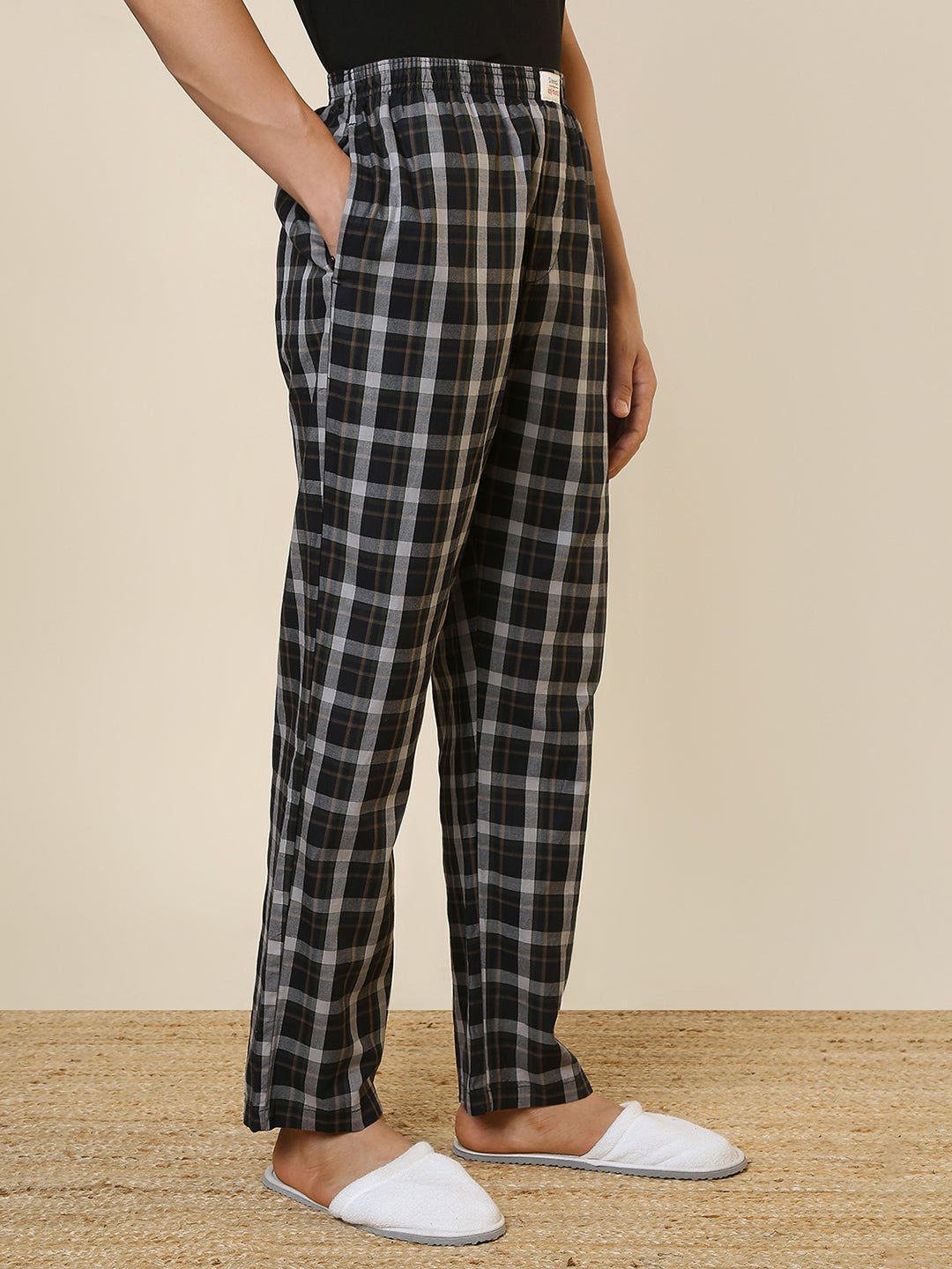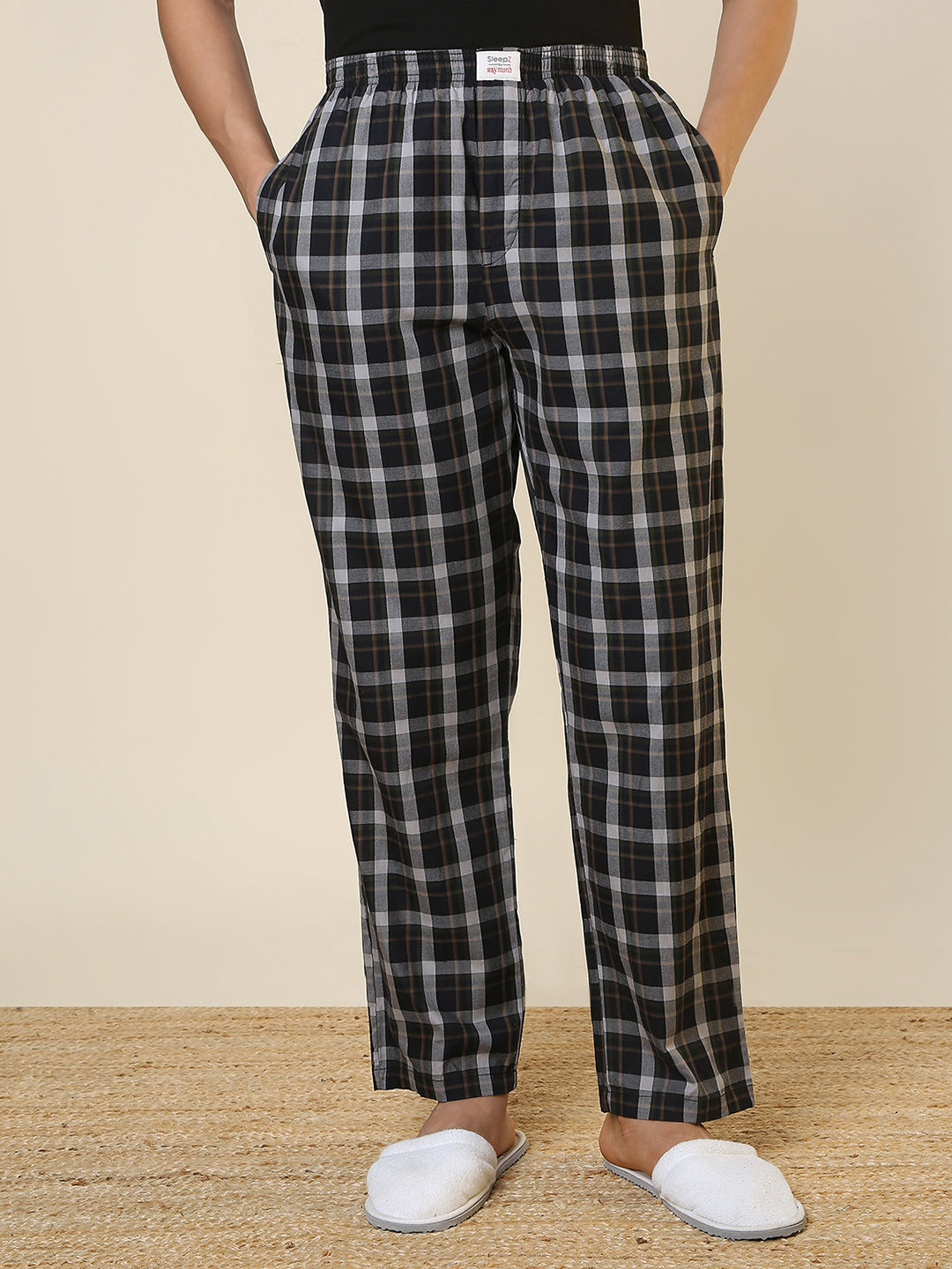 Sleepz Men Black Checks Regular Fit Cotton Pyjama