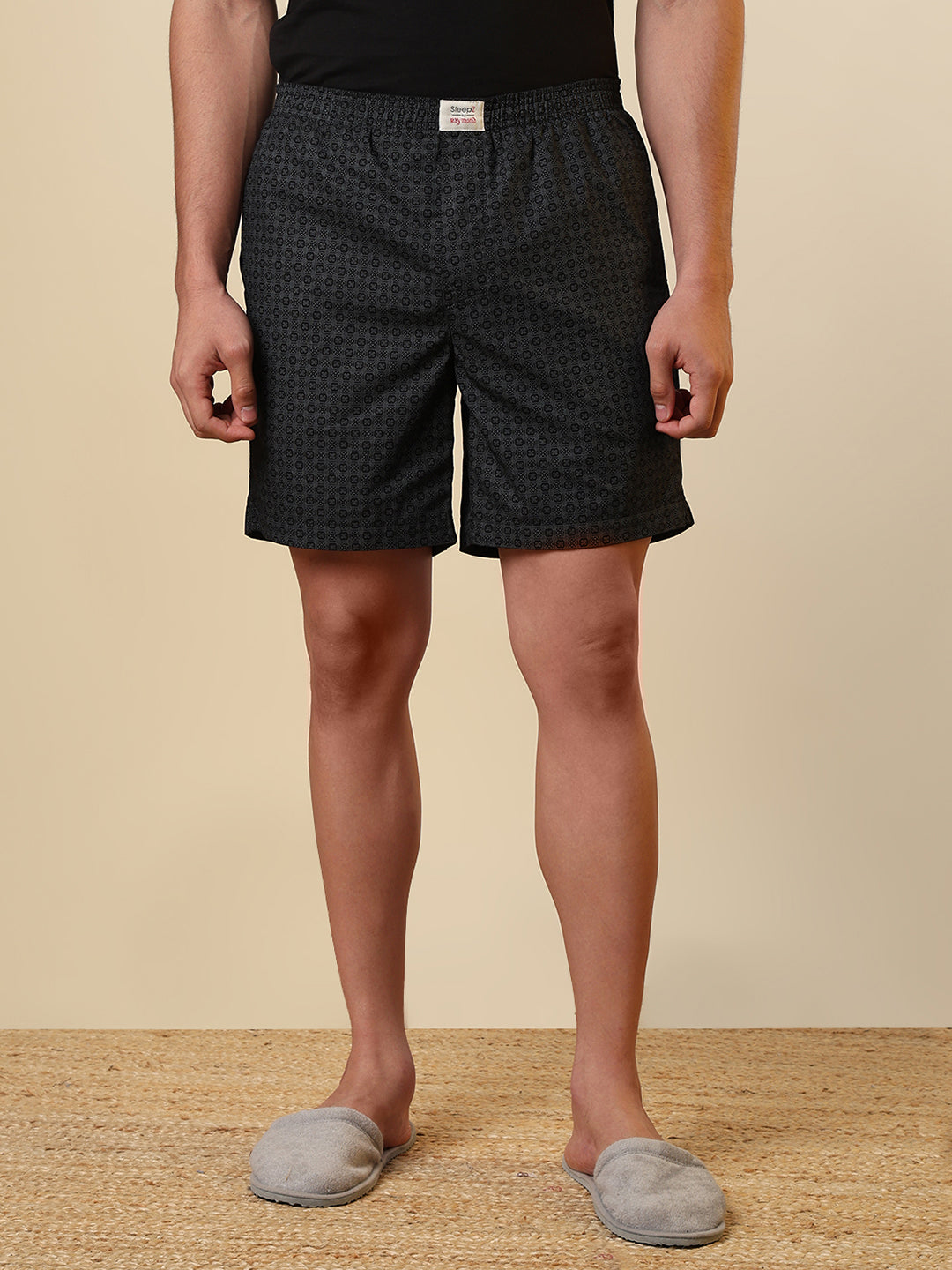 Sleepz Men Black Printed Regular Fit Cotton Boxer