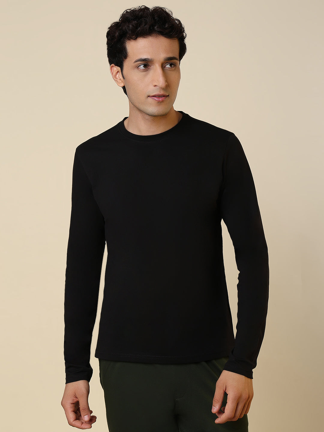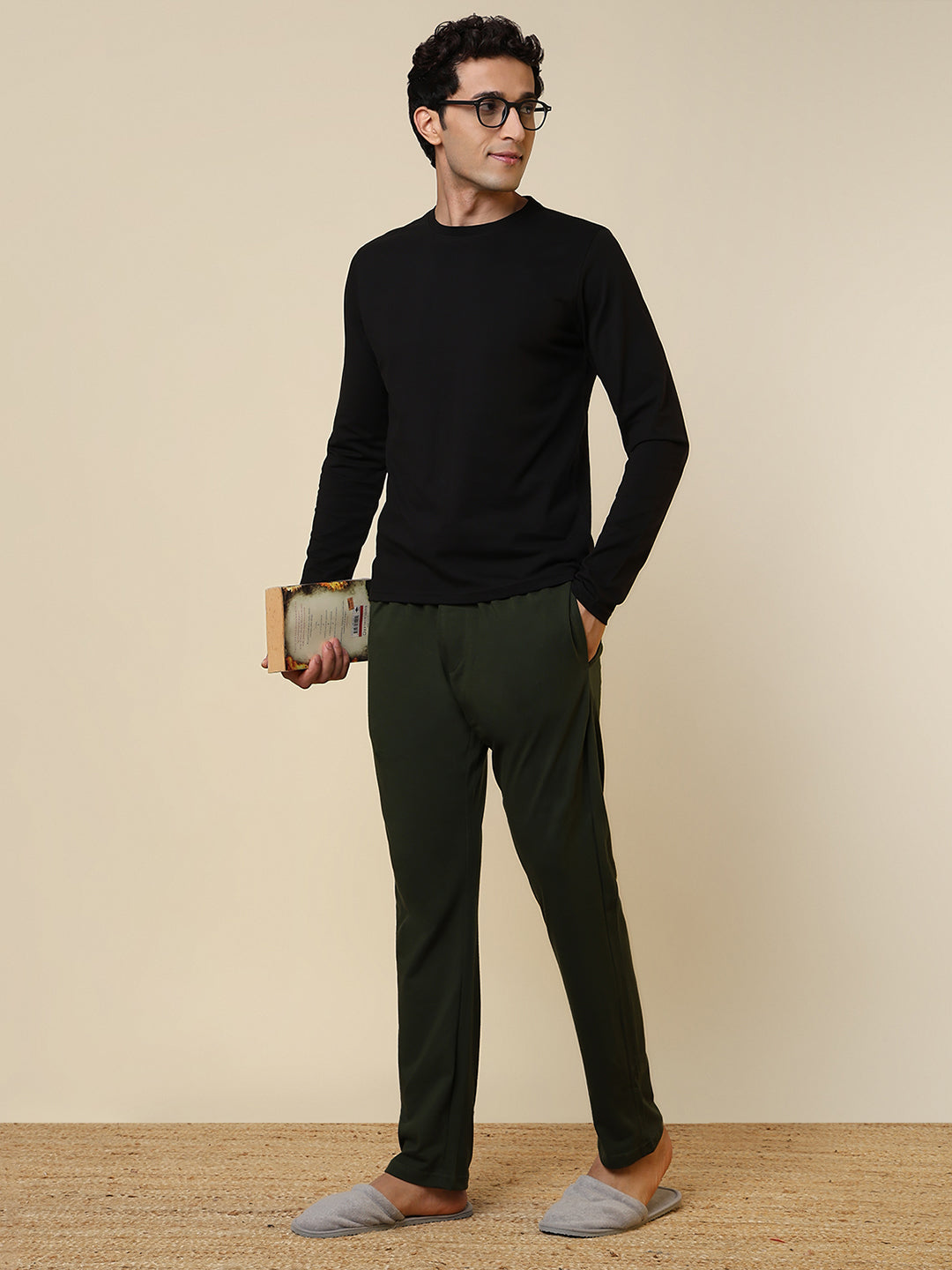 Sleepz Men Black Solid Regular Fit Cotton T-Shirt