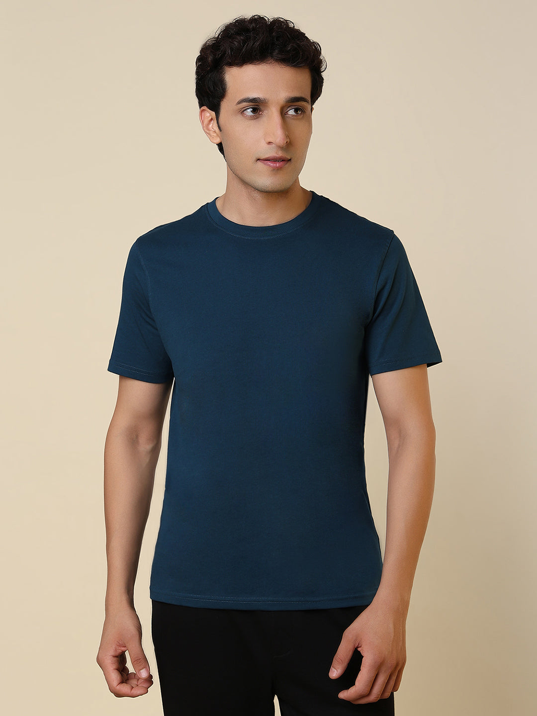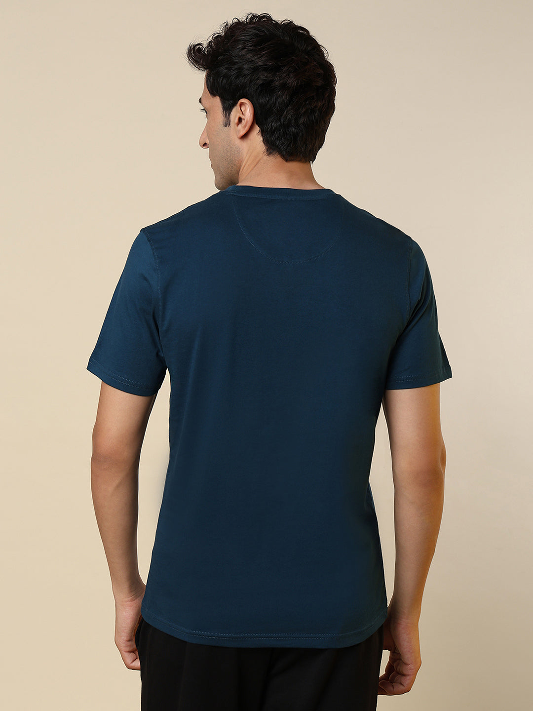 Men Blue Solid Regular Fit Cotton T-Shirt