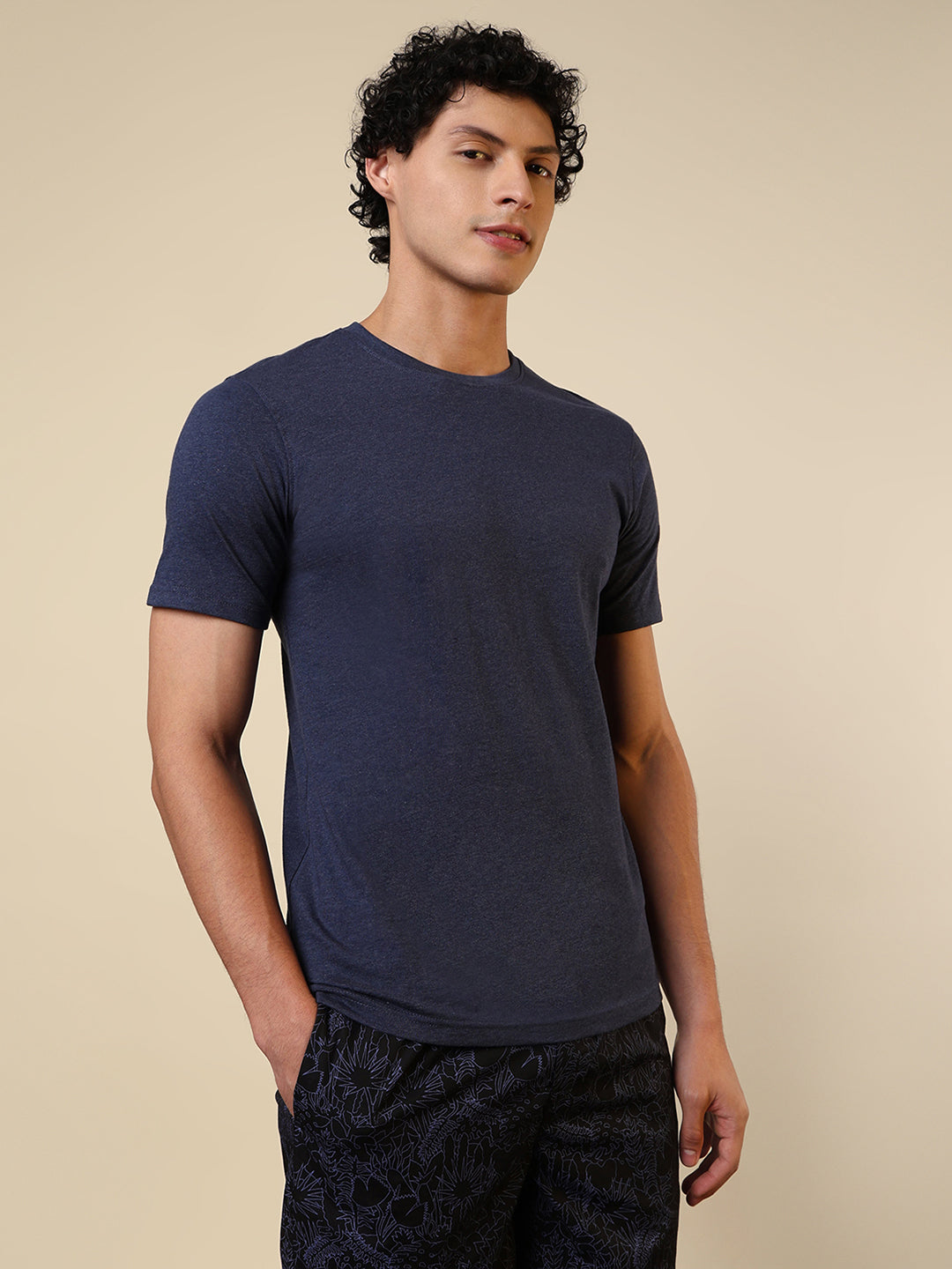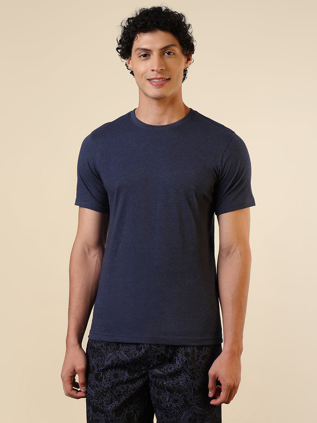 Sleepz Men Blue Solid Regular Fit Cotton T-Shirt