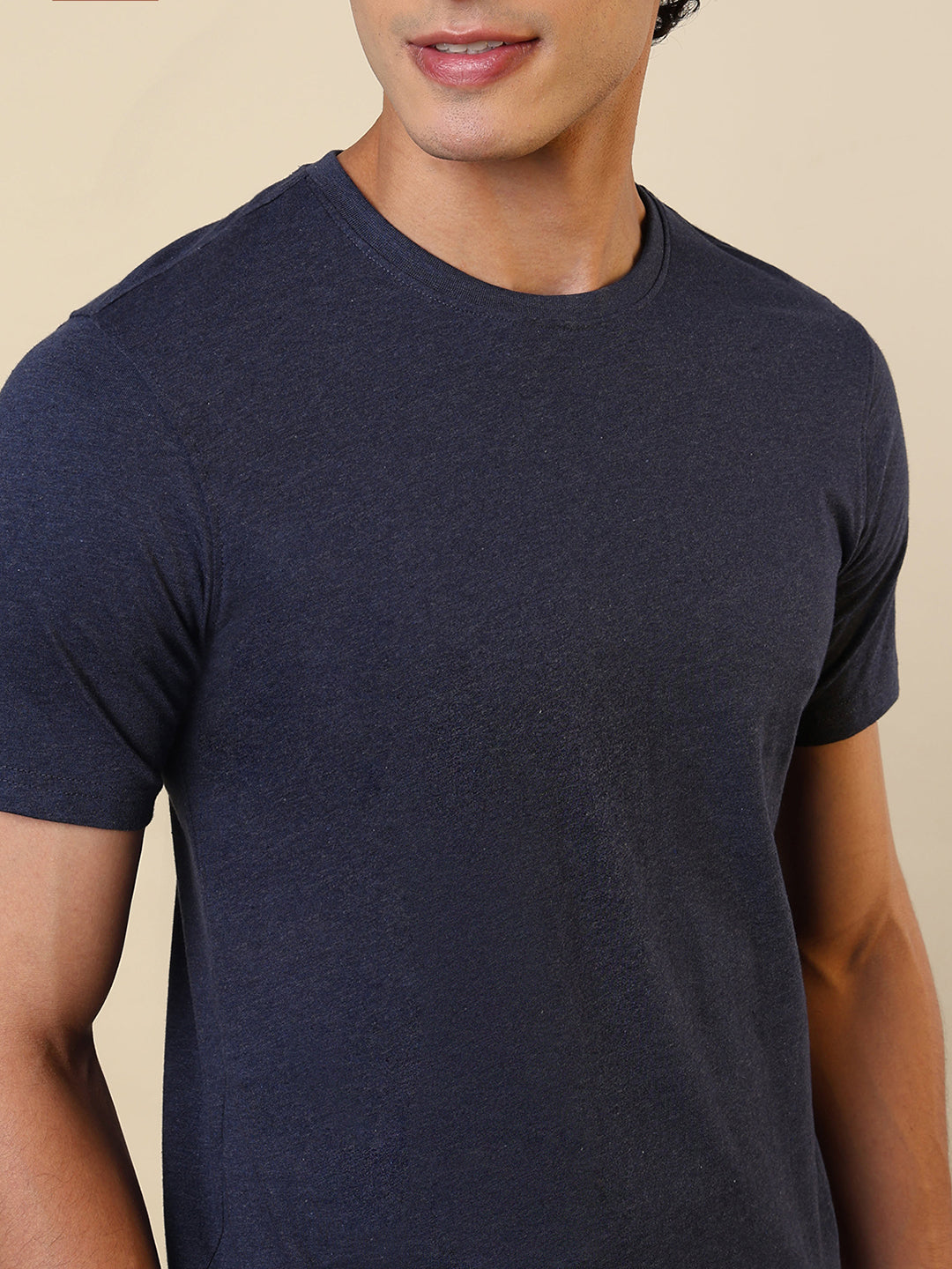 Men Blue Solid Regular Fit Cotton T-Shirt