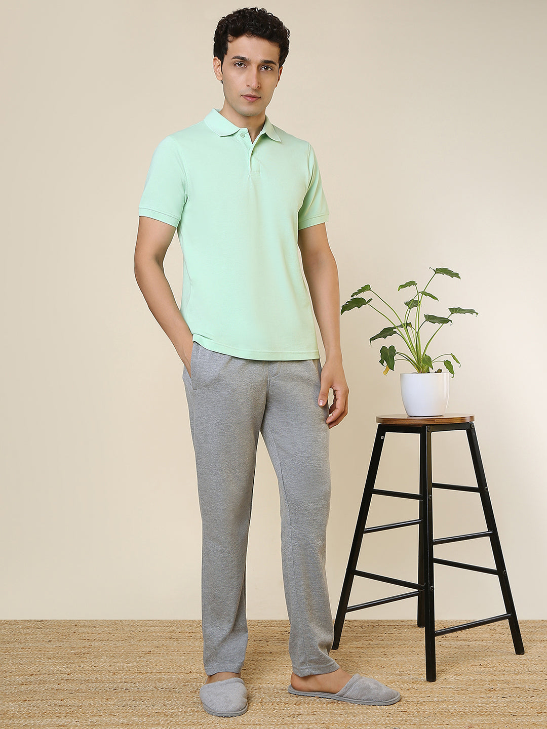 Sleepz Men Green Solid Regular Fit Cotton T-Shirt