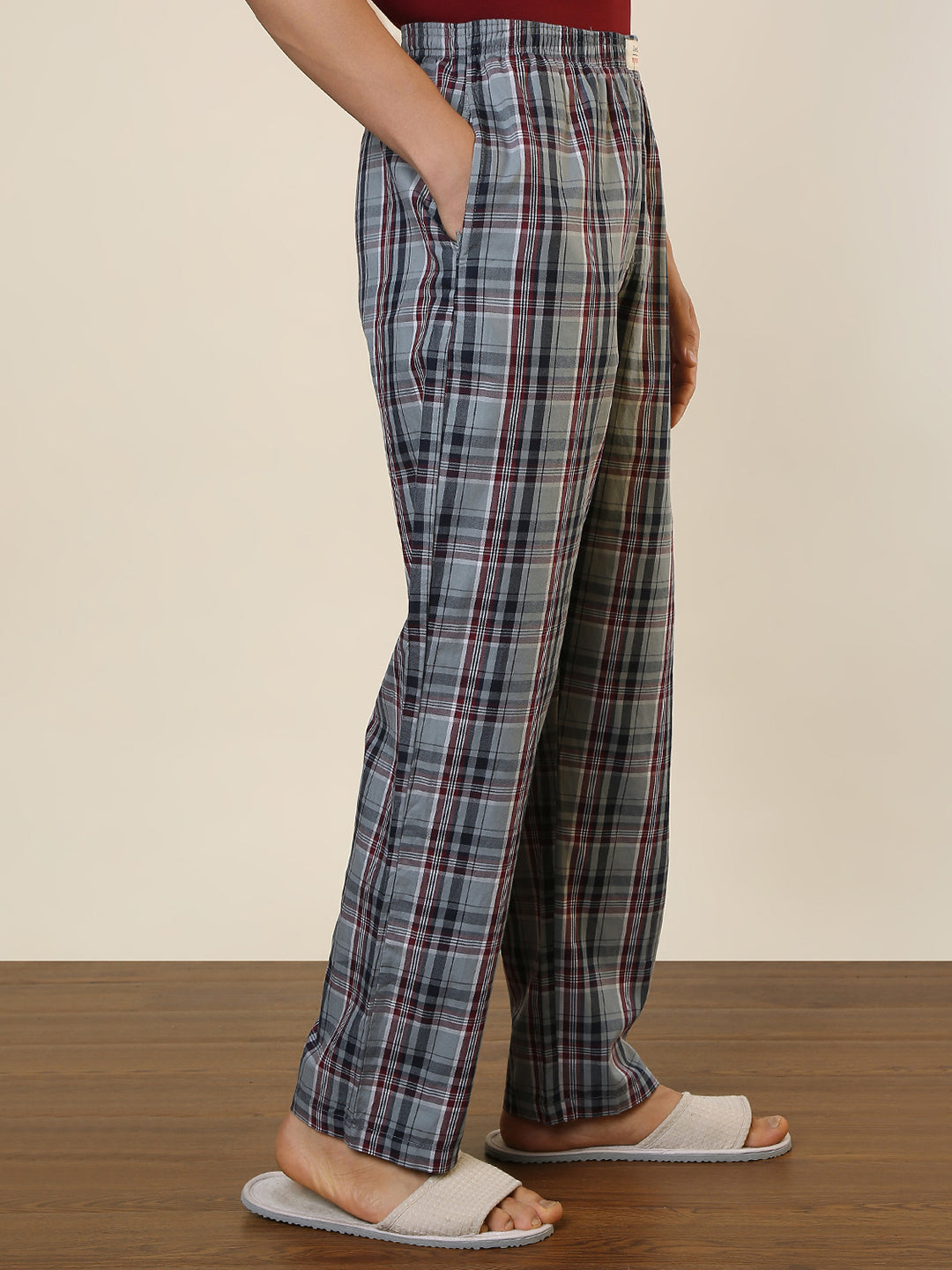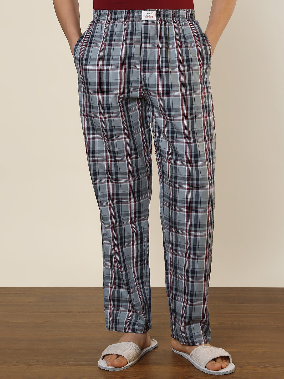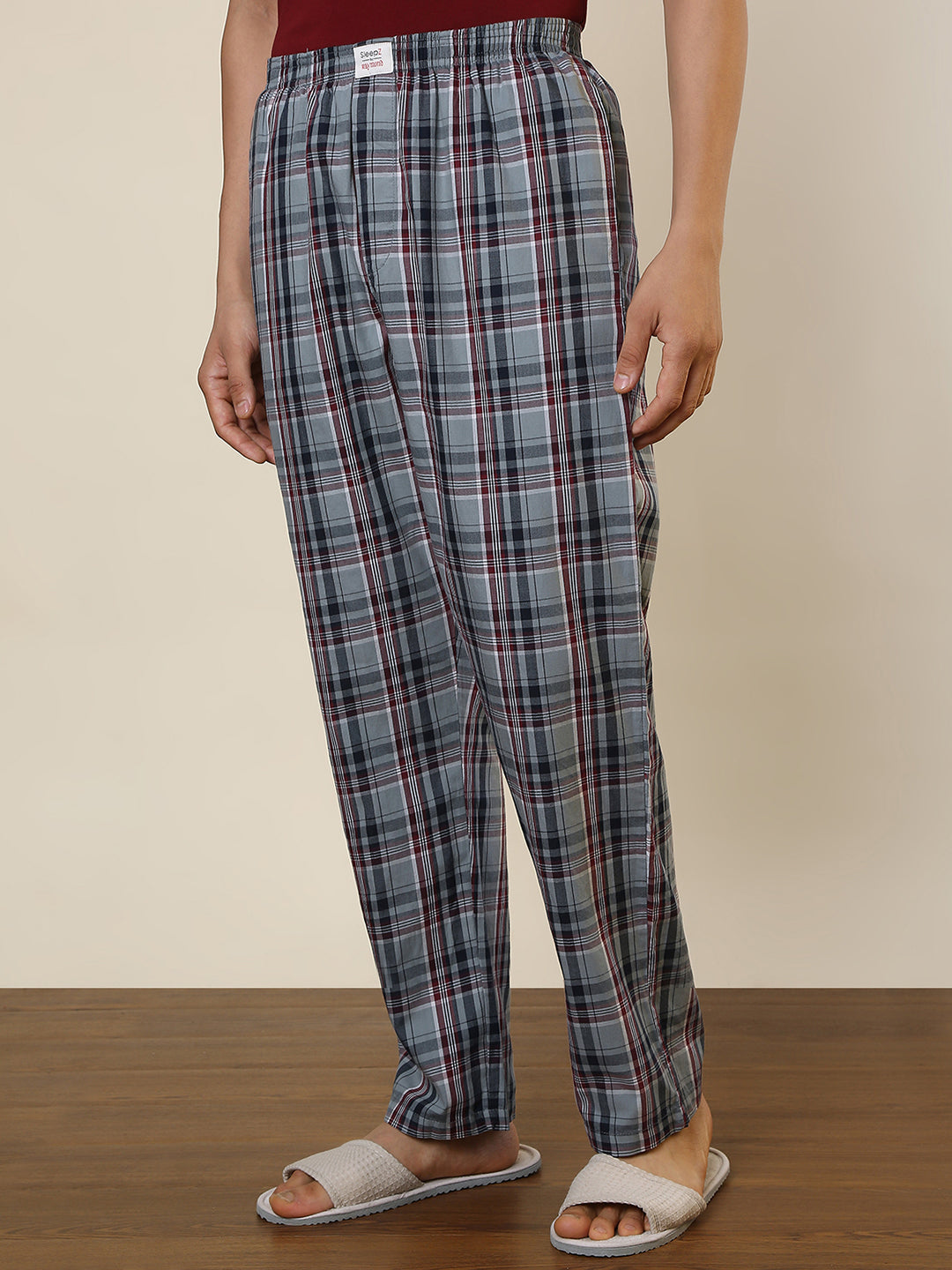 Sleepz Men Grey Checks Regular Fit Cotton Pyjama